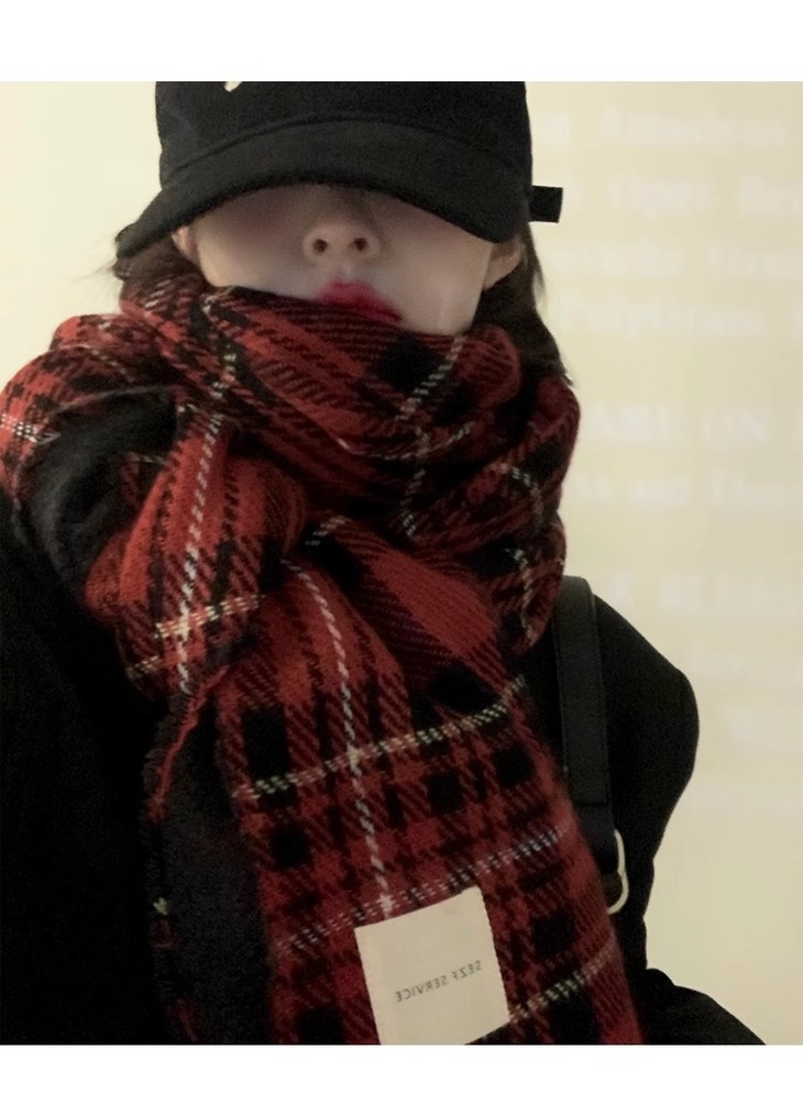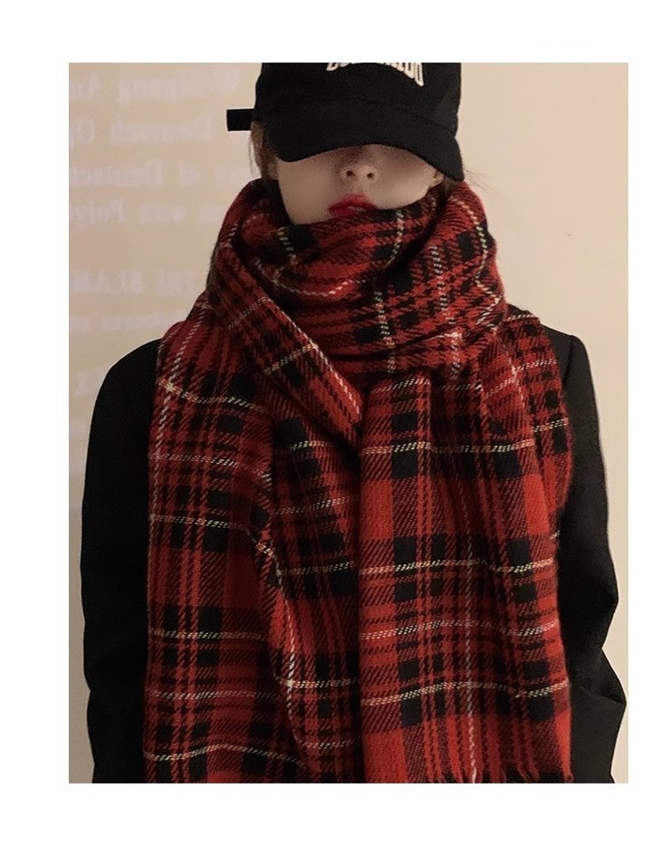 【关于售后】支持七天无理由退换货馨帮帮撞色格子围脖加厚保暖披肩学生韩版百搭御寒格纹围巾女冬季,格子围巾女秋冬季高级感韩版送生日礼物针织毛线软糯冬天,可定制色,尺寸,欢迎洽谈