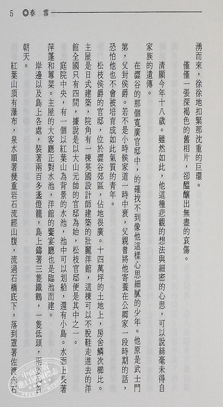 第一卷《春雪》是描寫冒瀆禁忌的宮闈愛情小說