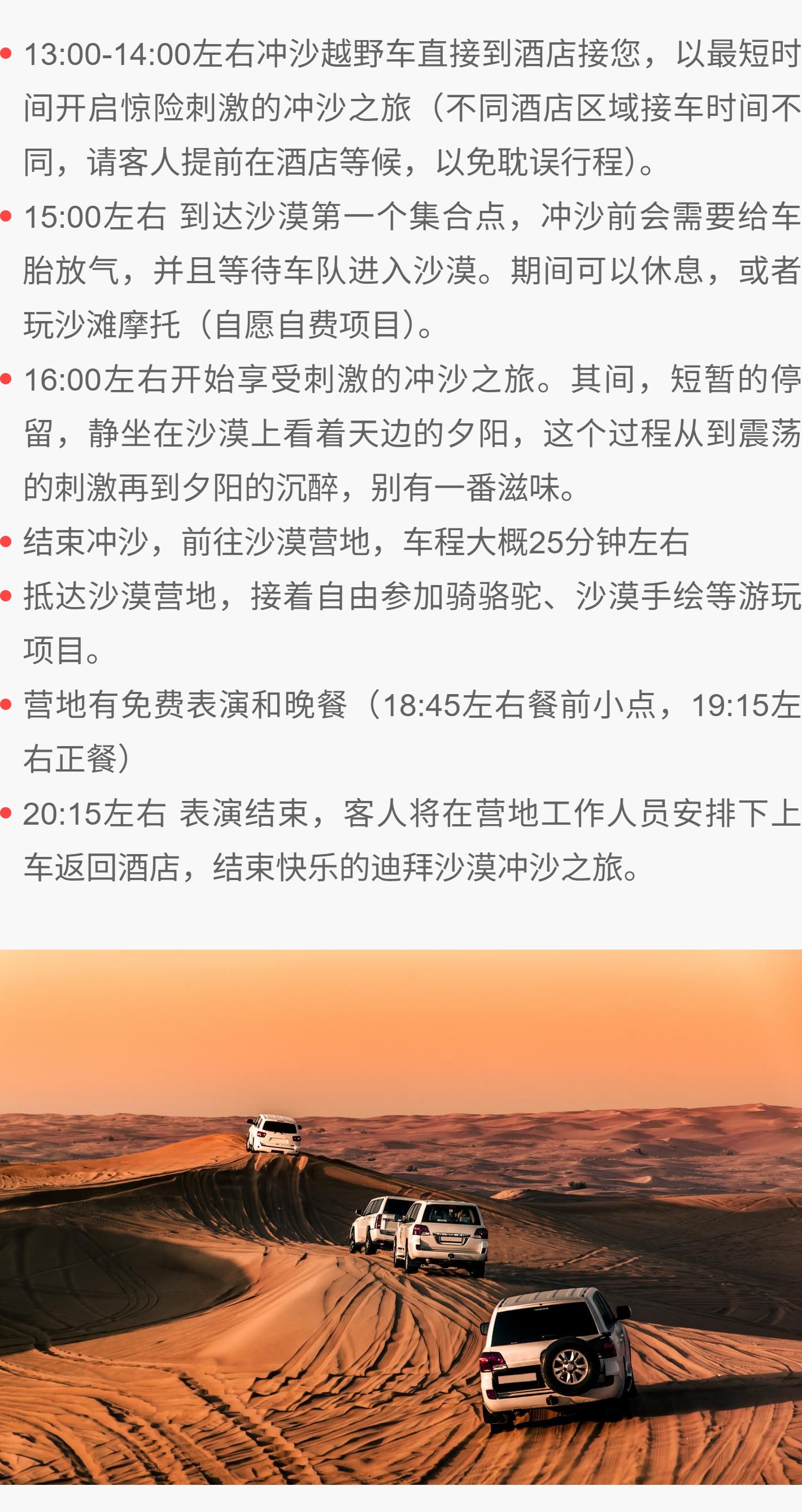 【迪拜•当地玩乐】迪拜沙漠冲沙一日游【网红沙漠营地+日落+骑骆驼+表演+晚餐】