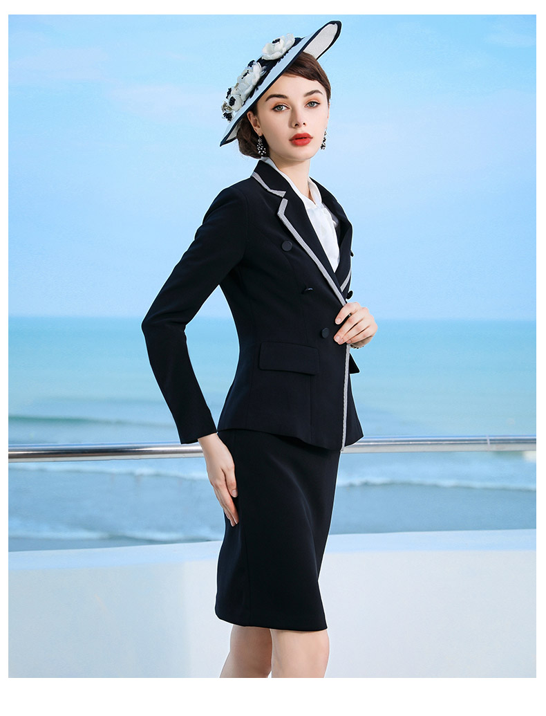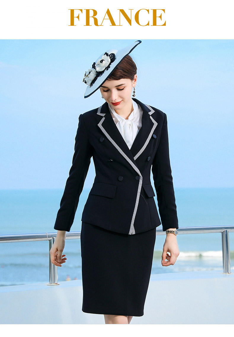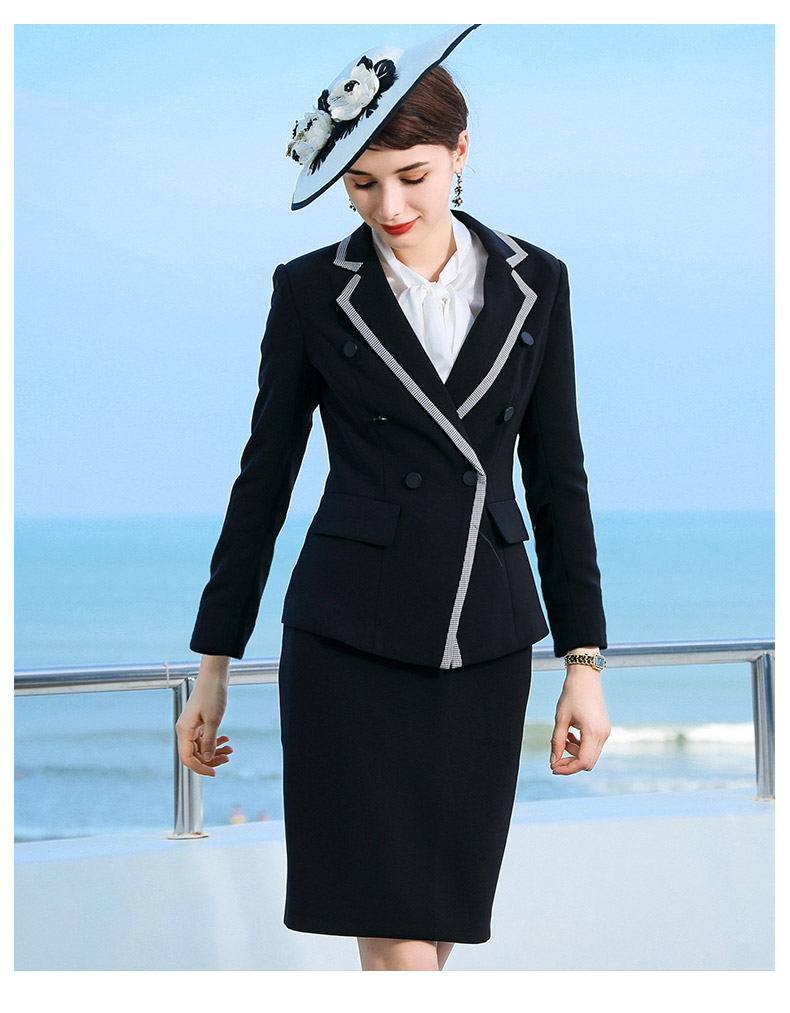 IWY/黑色千鸟格长袖时尚同情西服套装套裙CS476