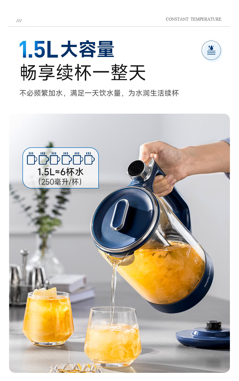 【摩飞养生壶MR6089】家用多功能办公室小型煮茶壶玻璃花茶便携式保温烧水壶