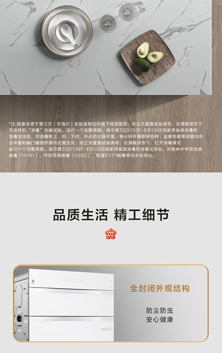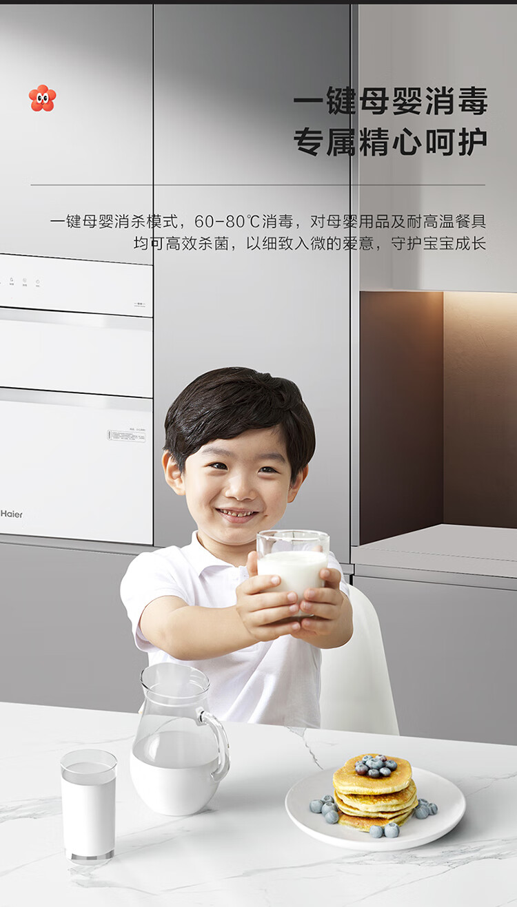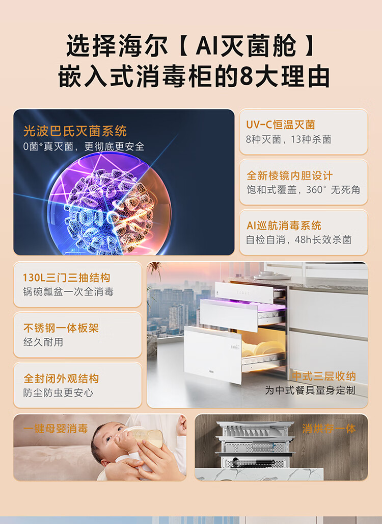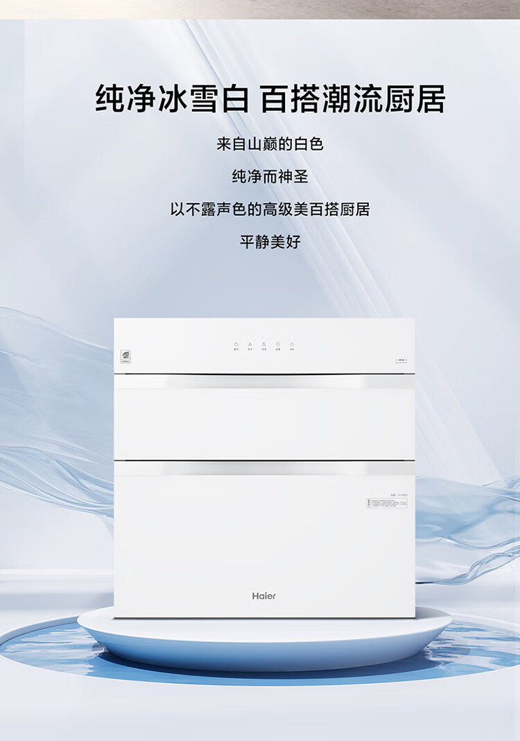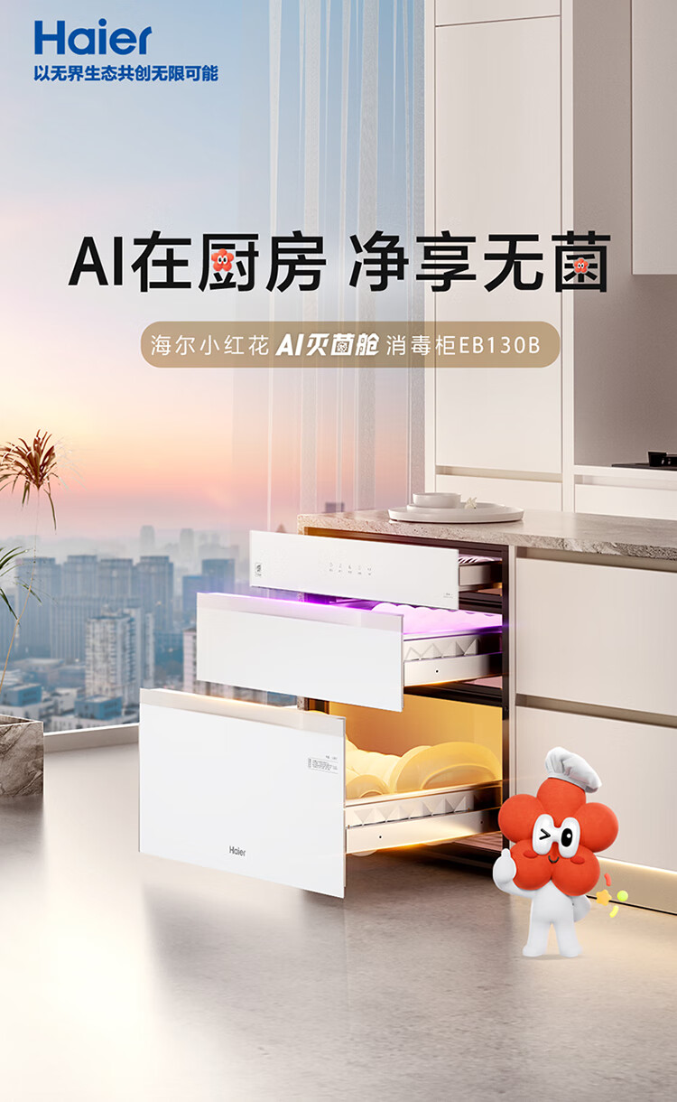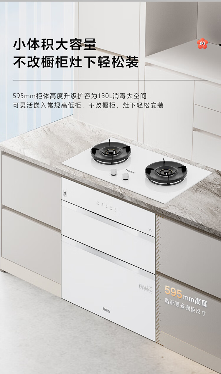 海尔(Haier)【小红花厨电-绽放版】嵌入式消毒柜 灭菌舱系列130L大容量三门三抽 白色家用消毒碗柜 EB130B