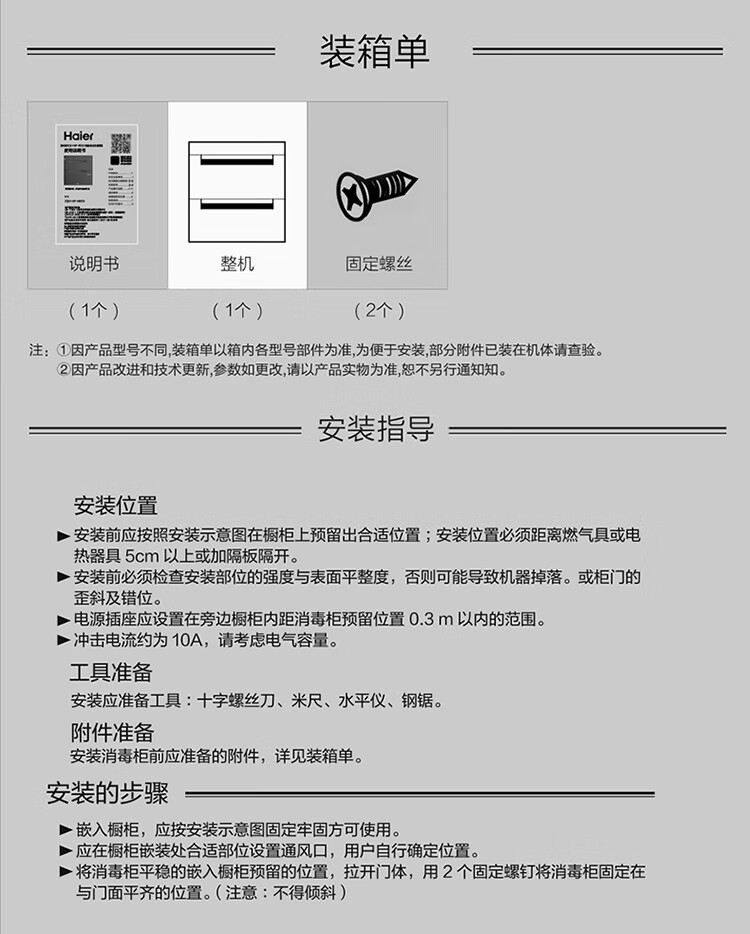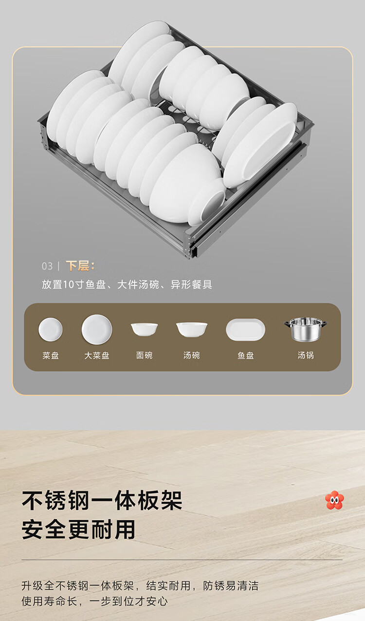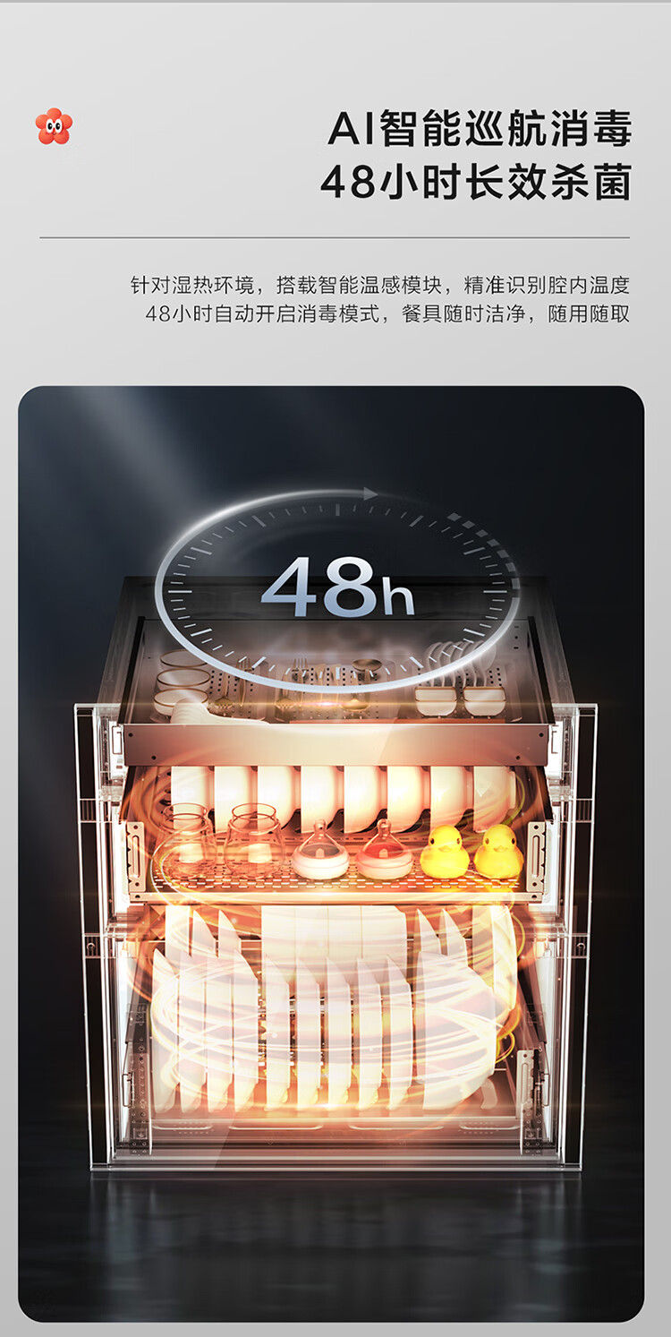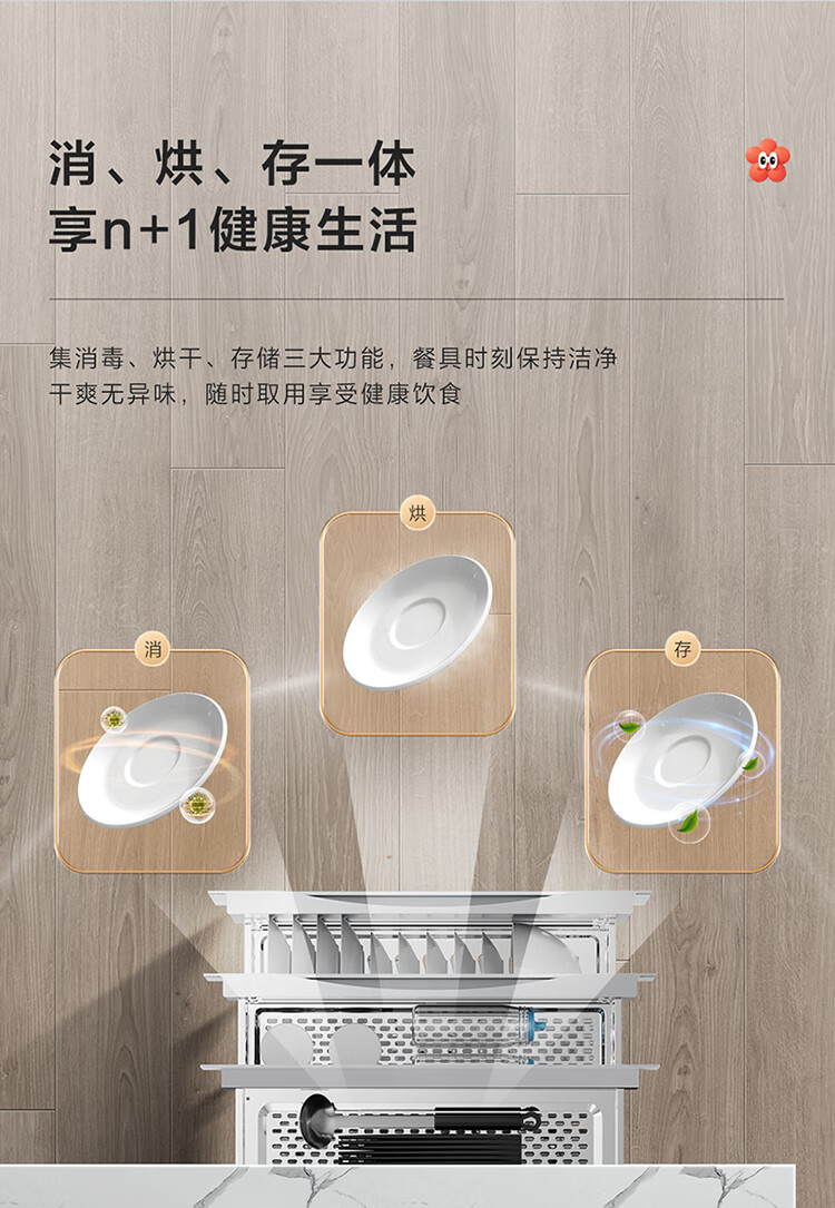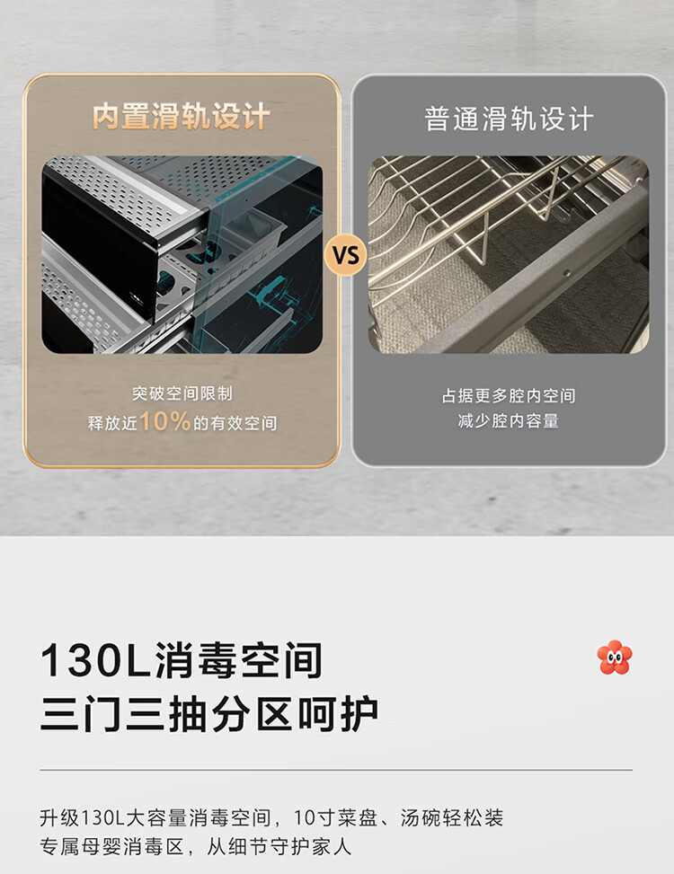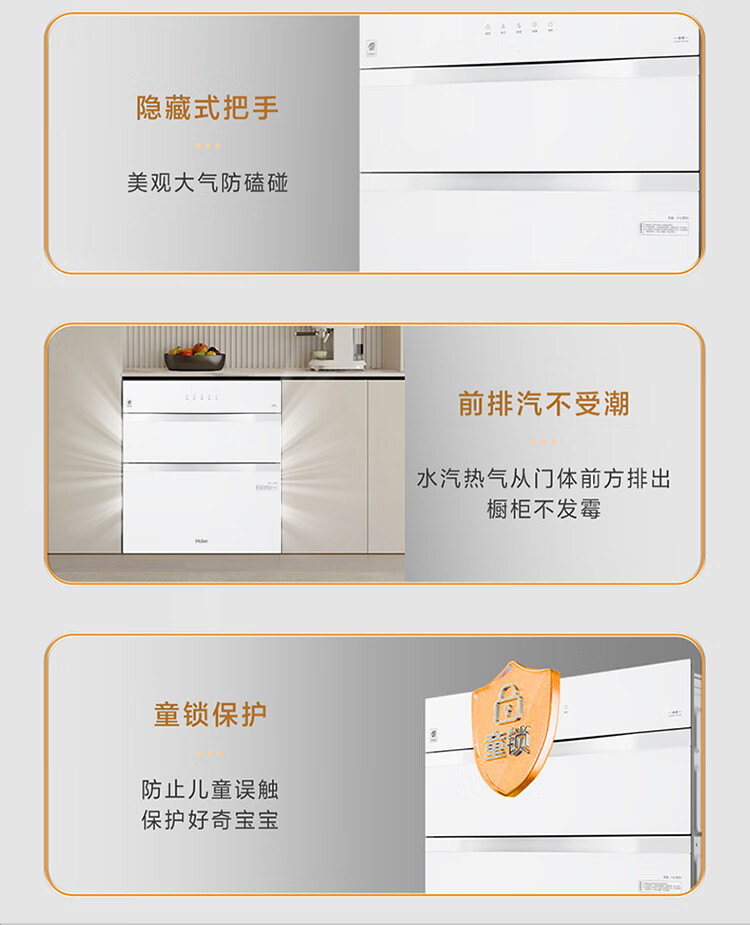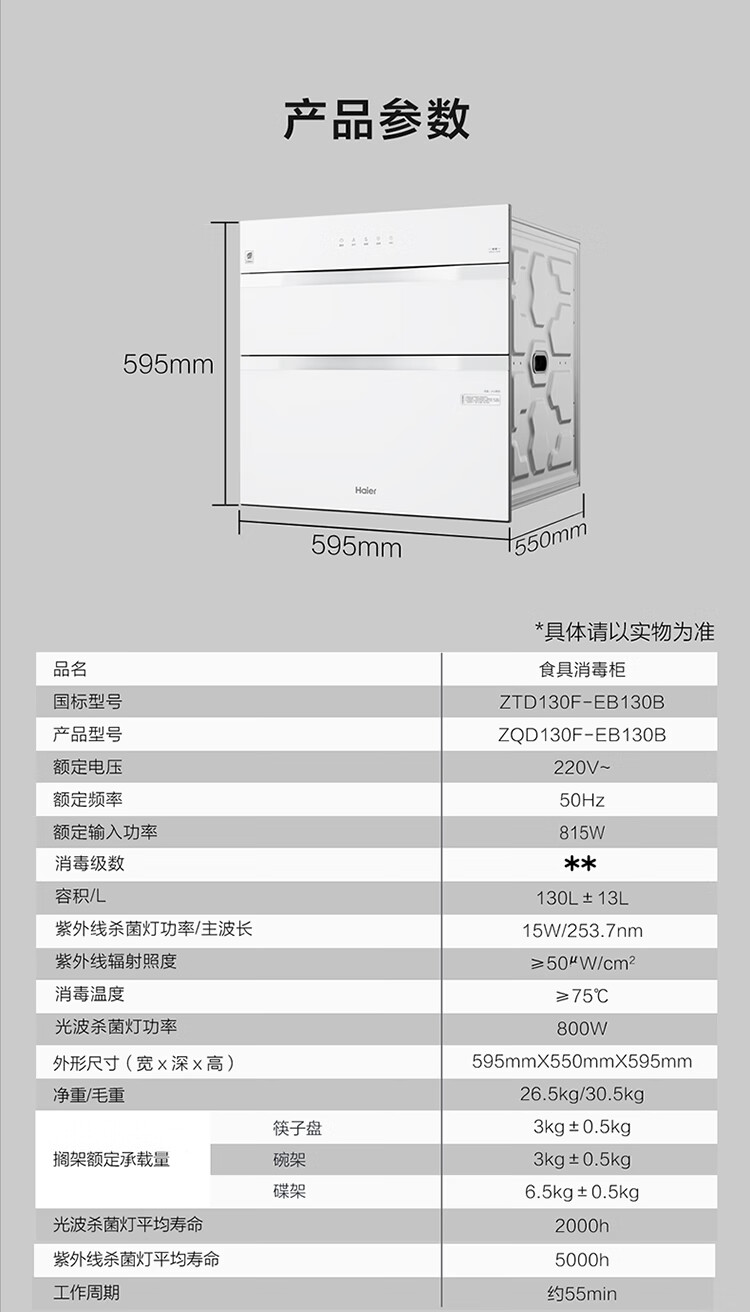 海尔(Haier)【小红花厨电-绽放版】嵌入式消毒柜 灭菌舱系列130L大容量三门三抽 白色家用消毒碗柜 EB130B