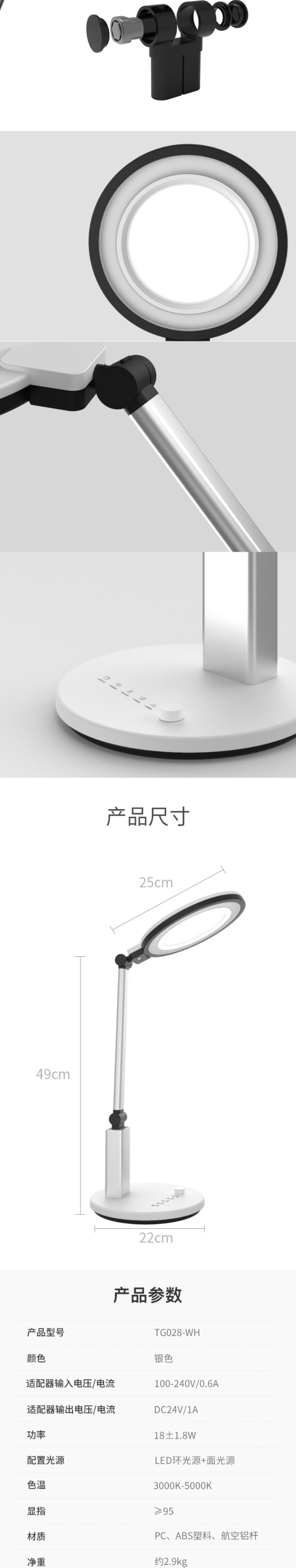 好视力智能调光学生学习护眼台灯 国AA级儿童卧室宿舍办公室阅读工作写字led床头书桌灯