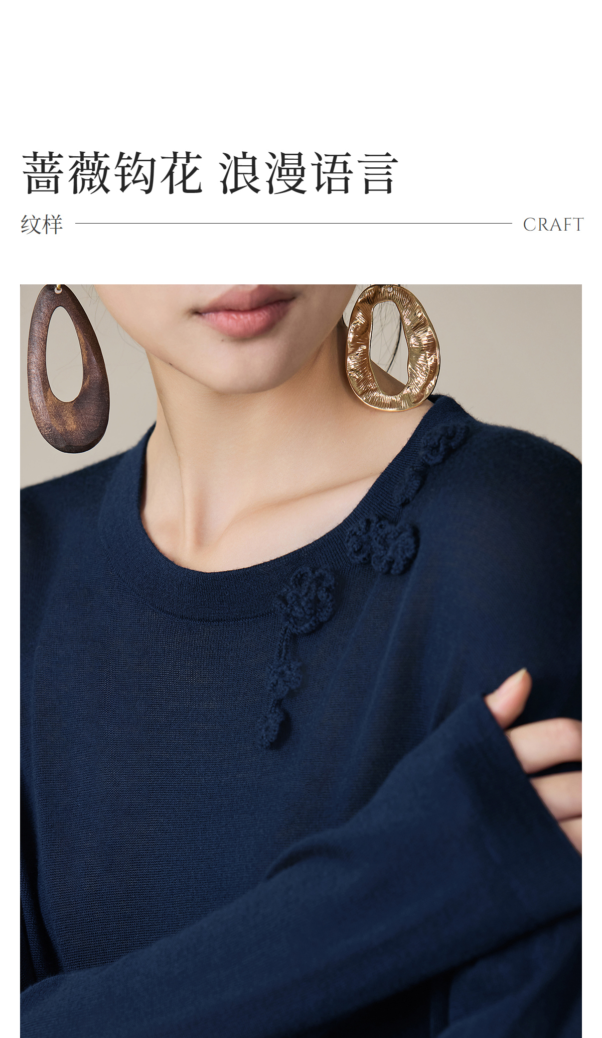 【林栖设计小店】(现货)绵羊毛毛织上衣仿手钩花宽松优雅2025秋季新款套头毛衣女1953025