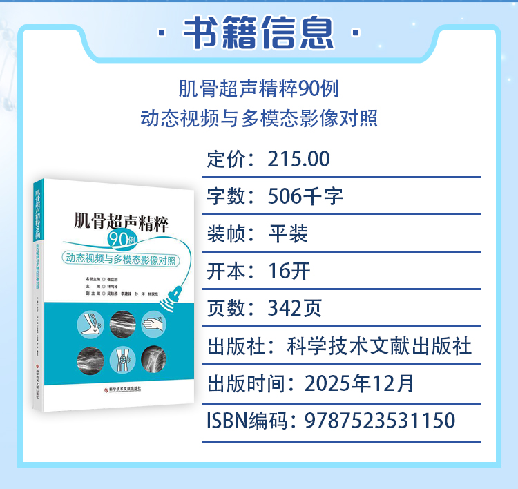 肌骨超声精粹90例 动态视频与多模态影像对照 林鸣琴 其中部分病例还提供超声动态视频,每个视频均附有讲解 科学技术文献出版社