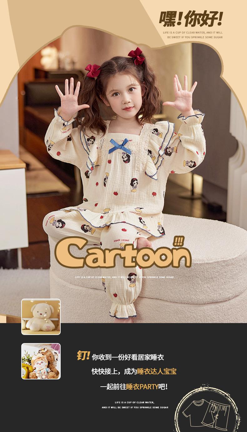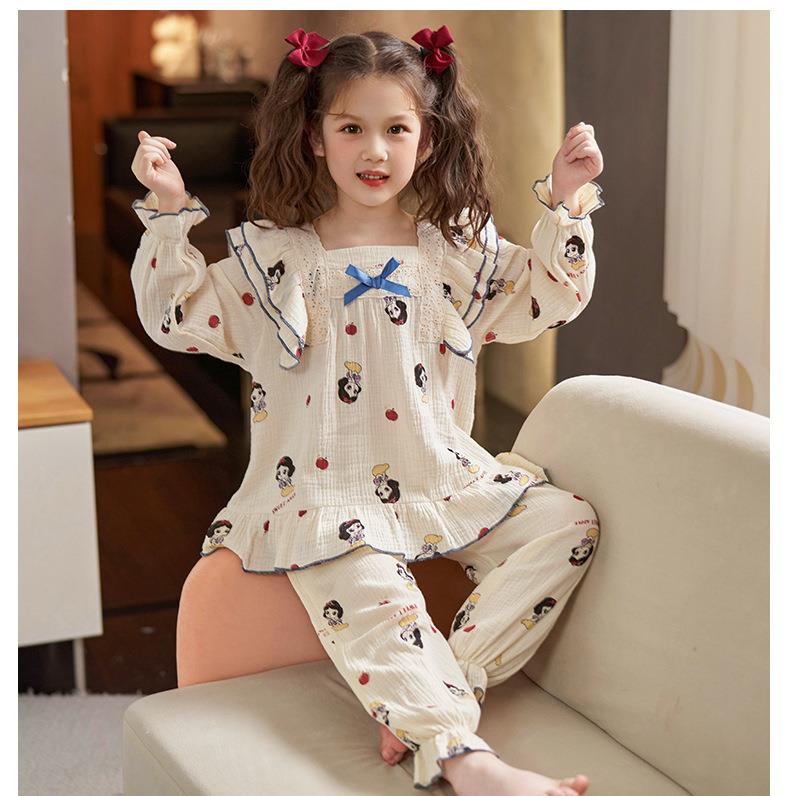 2023新款儿童睡衣纯棉春秋季薄款女童棉纱布中大童亲子家居服套装