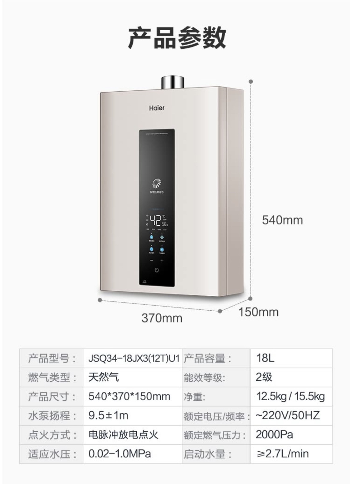 海尔(Haier)热水器JSQ34-18JX3(12T)U1