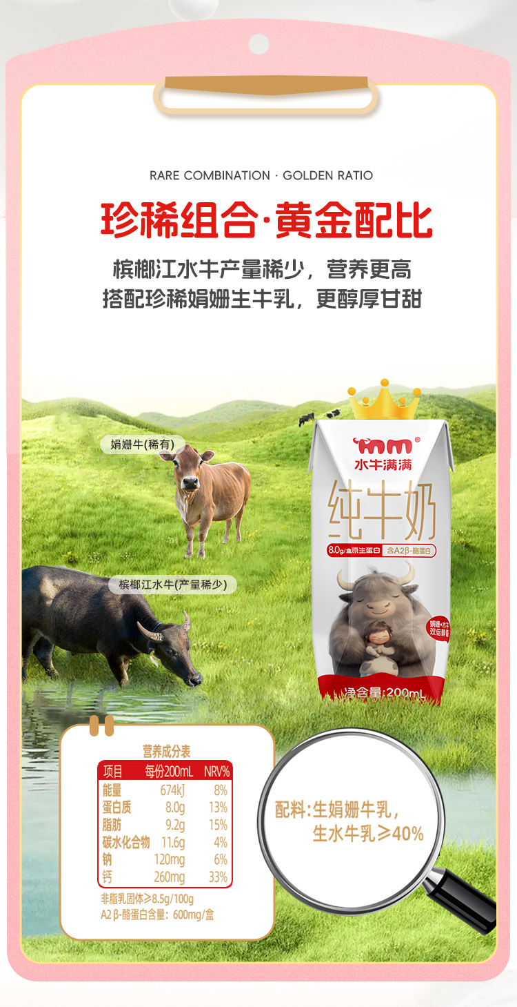 ✅A2生牛乳+自然散养水牛乳完美科学配比!