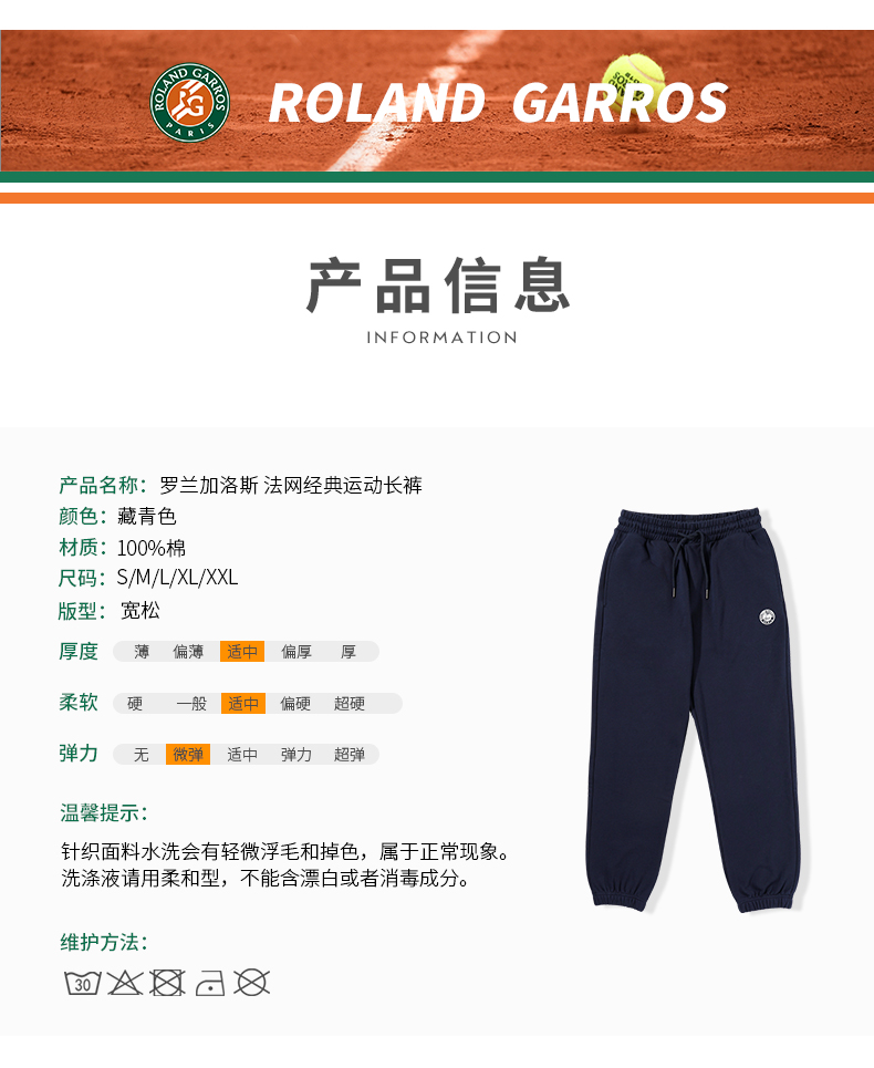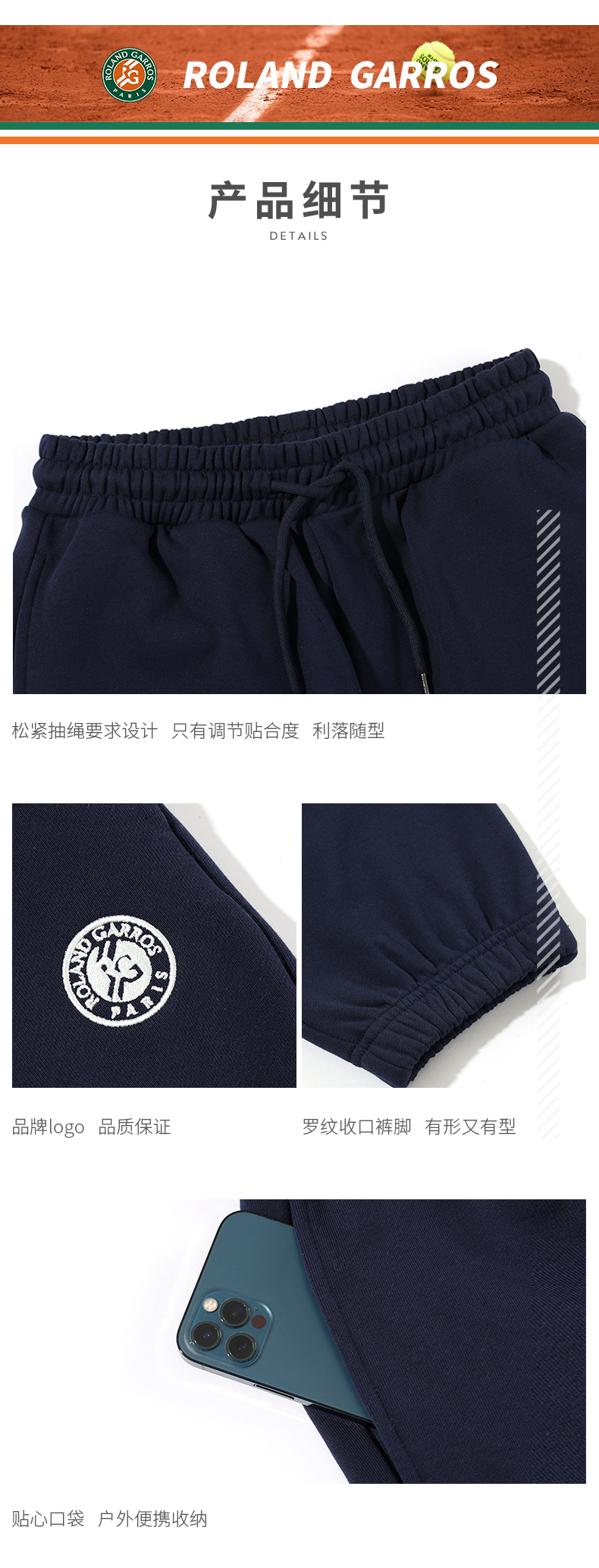 罗兰加洛斯运动裤子男士春季2023新款春秋潮牌卫裤休闲束脚长裤