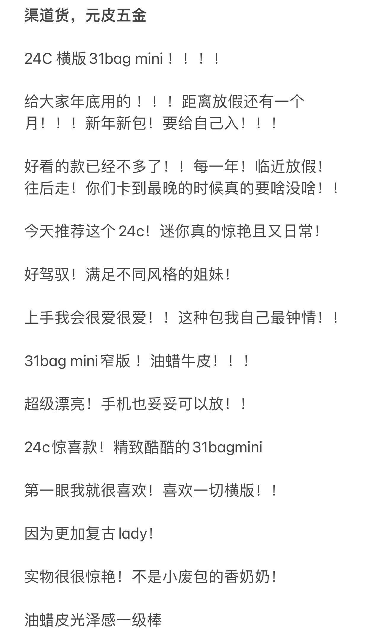 重磅渠道 24C横版31bag mini 横款链条包手提包
