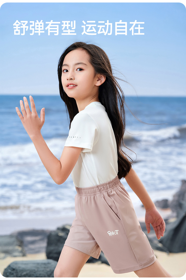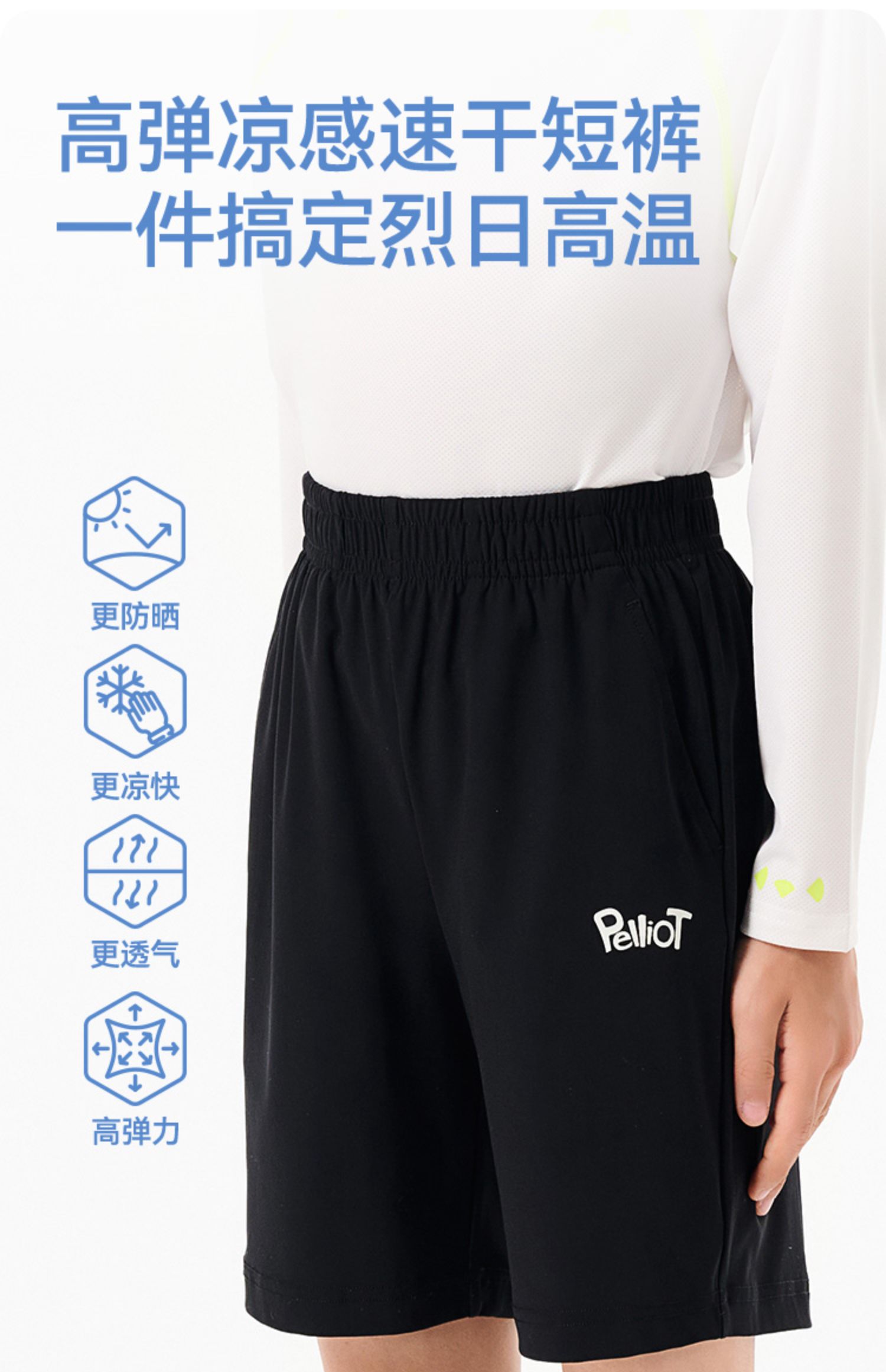 伯希和户外儿童速干短裤清爽透气徒步登山裤高弹凉感运动五分裤