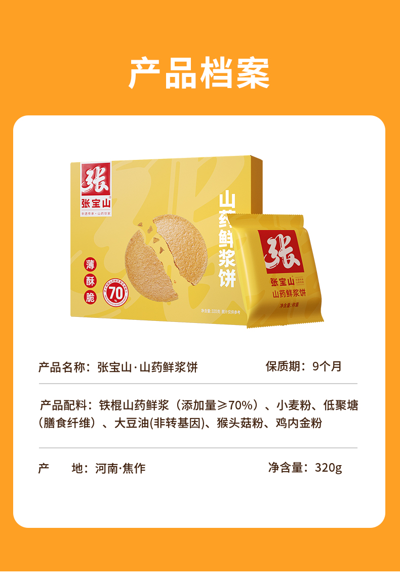 【张宝山鲜浆饼】 70%山药原浆 香醇美味 口感丰富有层次