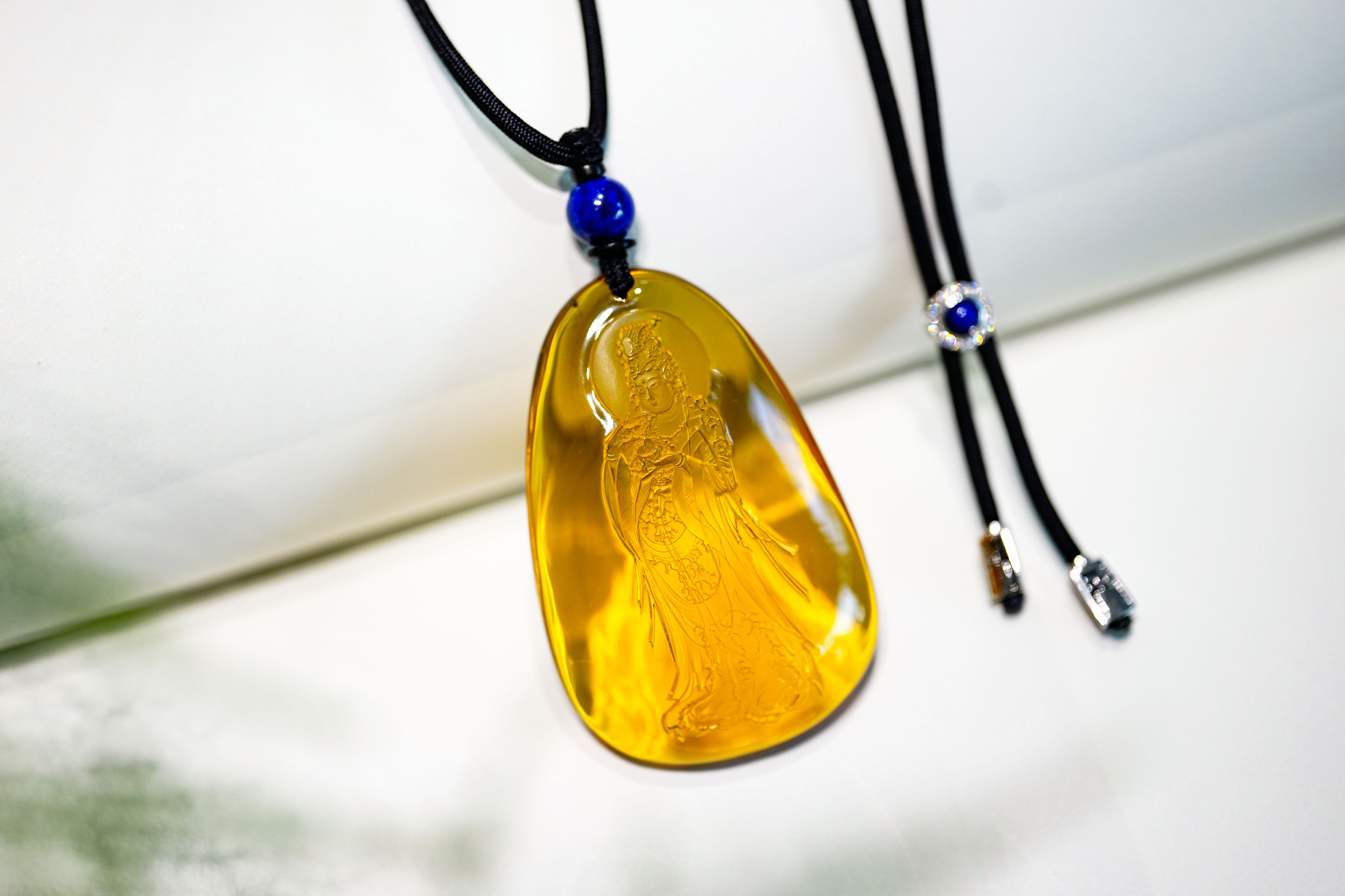 杨枝观音·墨西哥蓝珀水滴形雕件吊坠