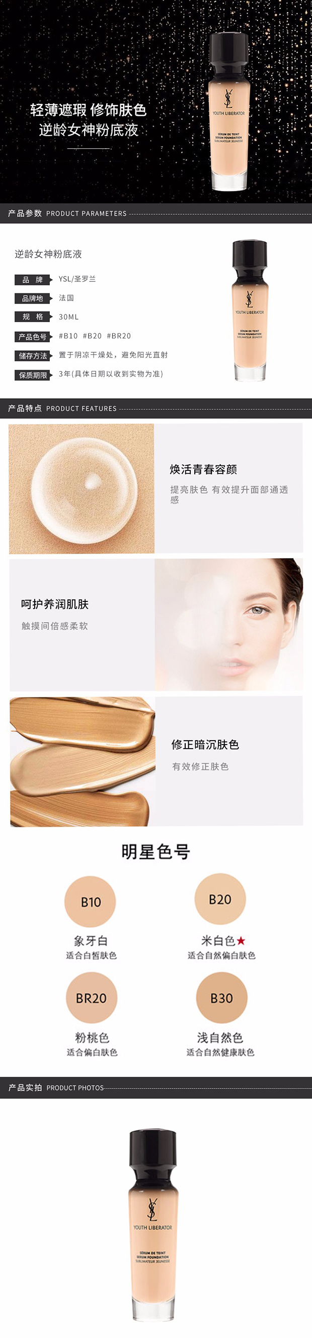 【中欧班列精选】 YSL圣罗兰 逆龄粉底液妍活青春粉底液 B10#象牙白 B20#米白色 y BF