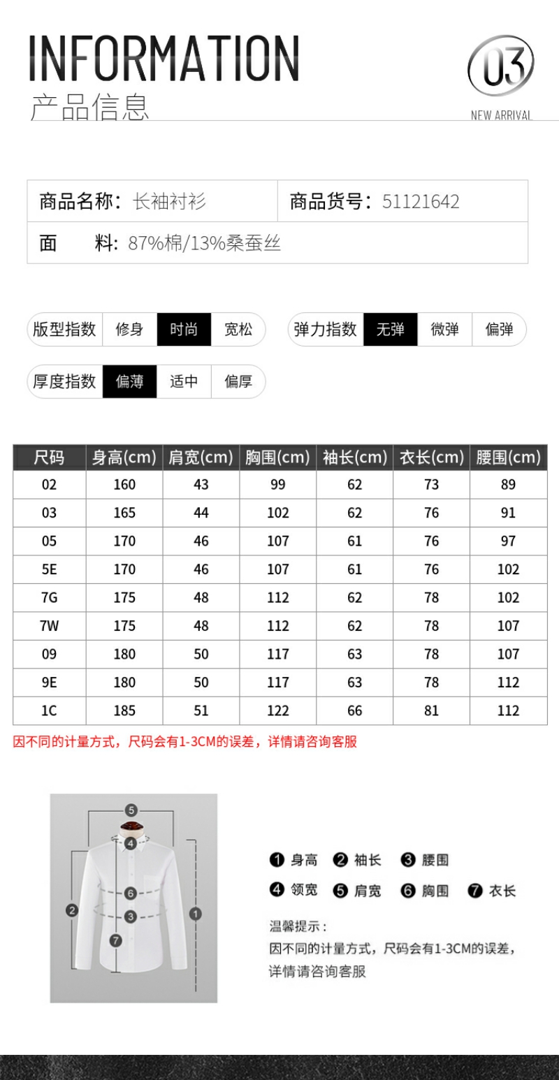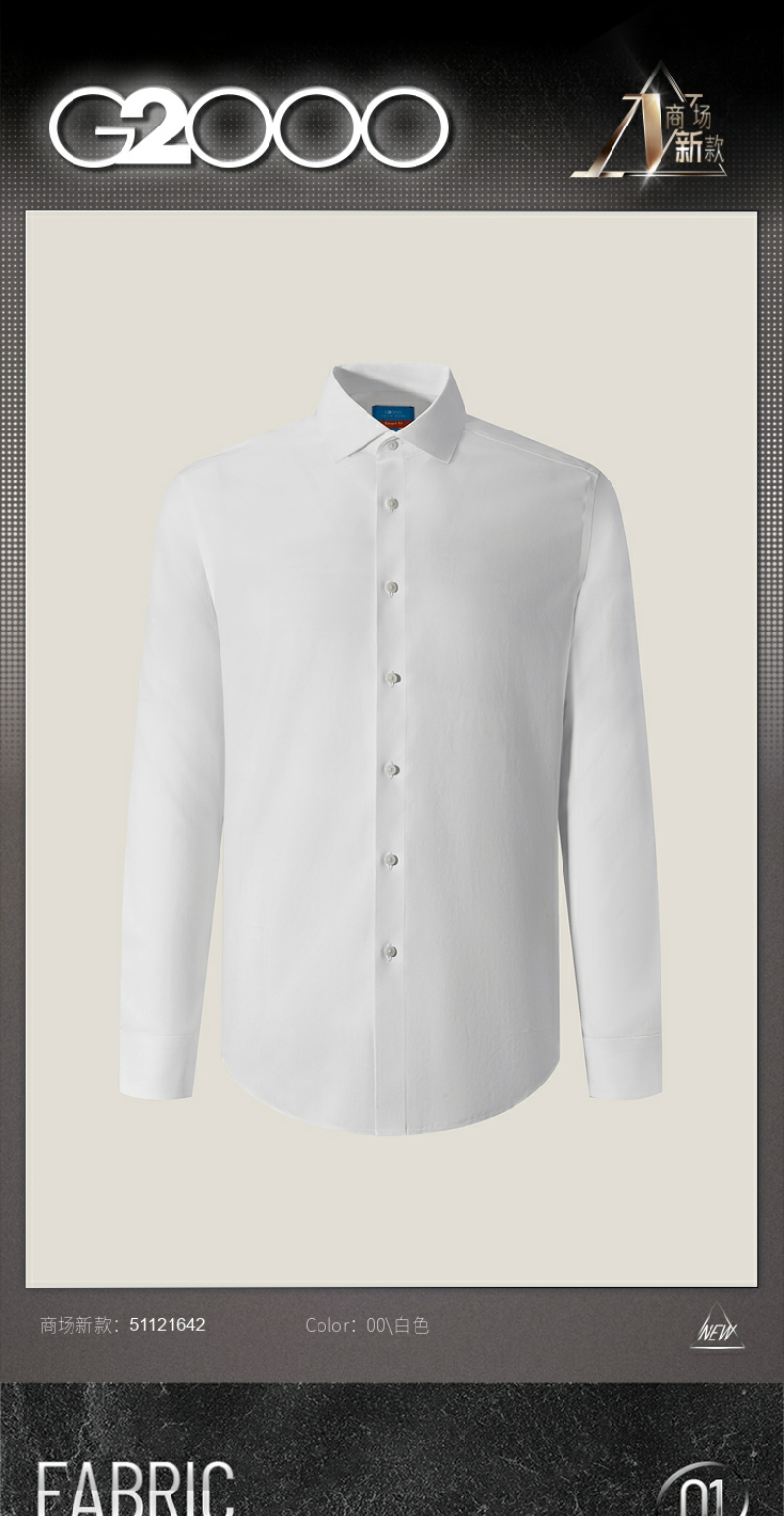 G2000男装SS25商场款【免烫防皱/棉质桑蚕丝】人字纹长袖衬衫51121642