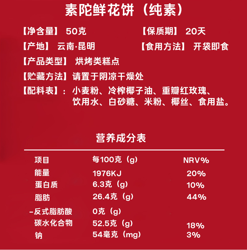 【产品名称】:素陀鲜花饼(纯素)