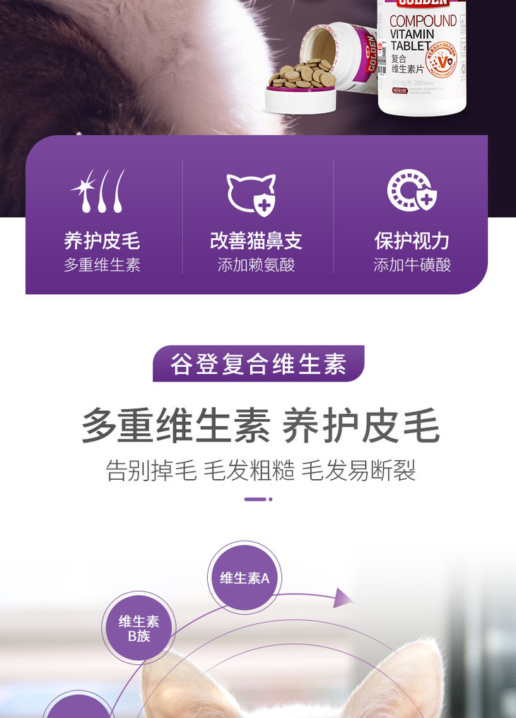 谷登猫犬通用肠胃宝/复合维生素片/化毛膏营养膏/软骨素