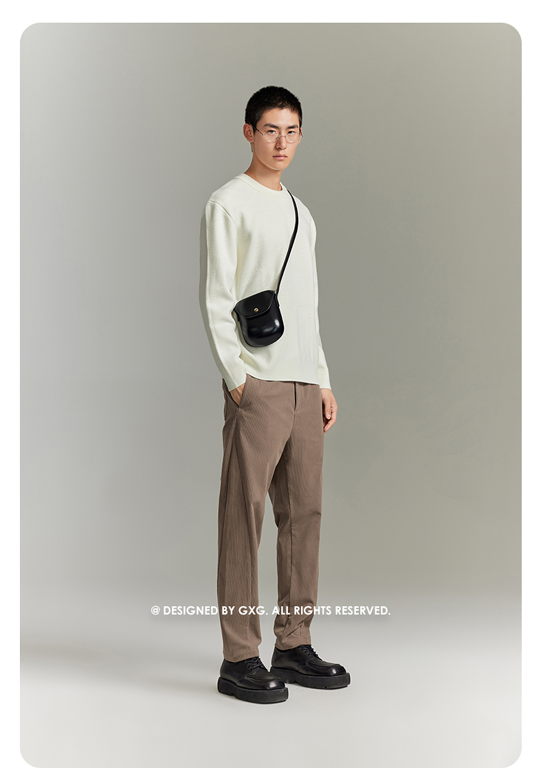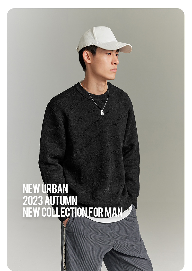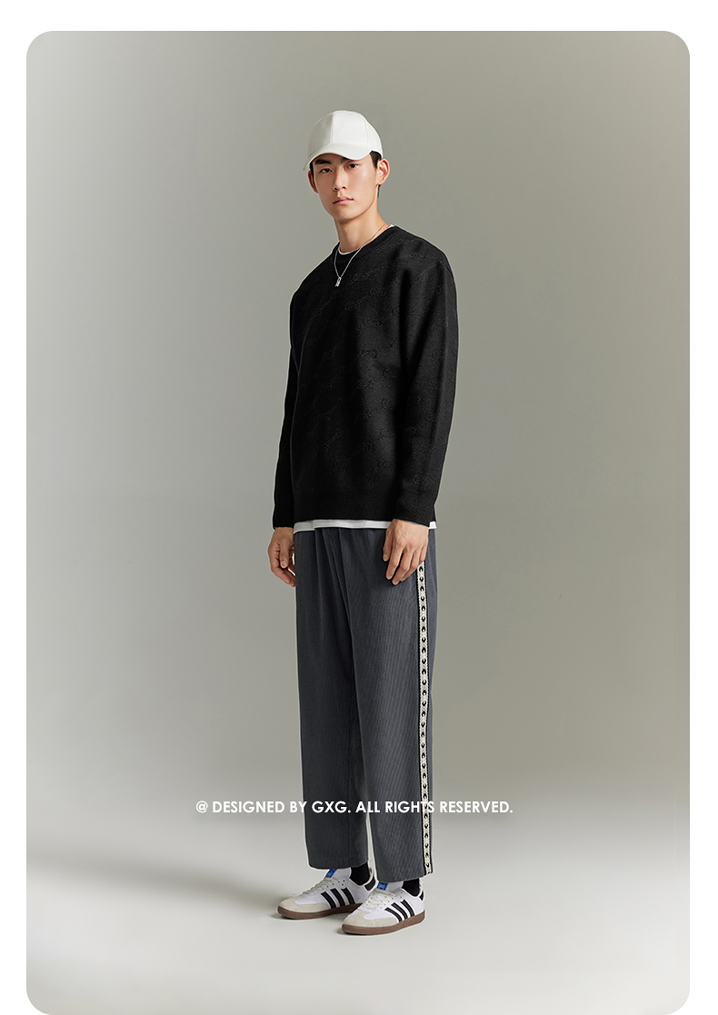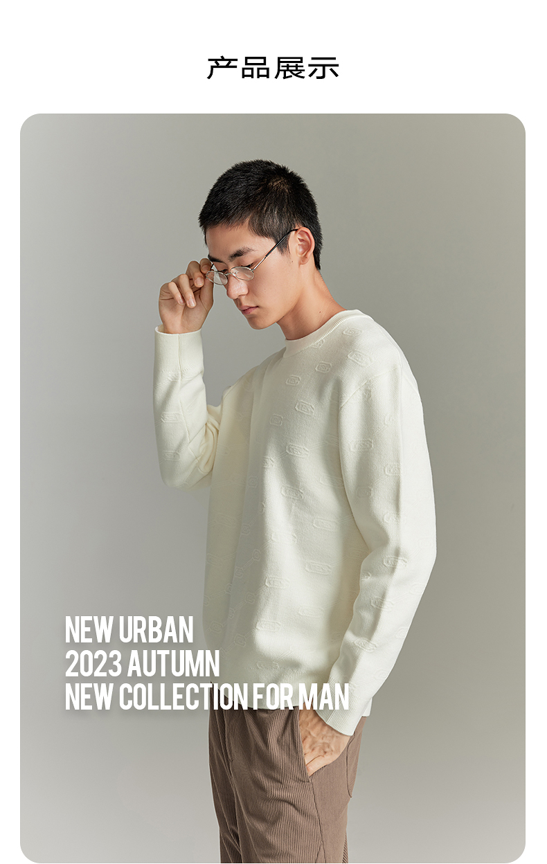 GXG男装 双色雪尼尔提花立体简约毛衣圆领针织衫 秋季热卖