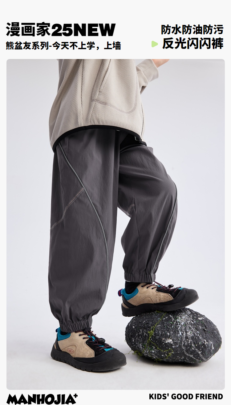 【熊朋友】漫画家25春Teflon三防户外运动3M反光嵌条梭织长裤