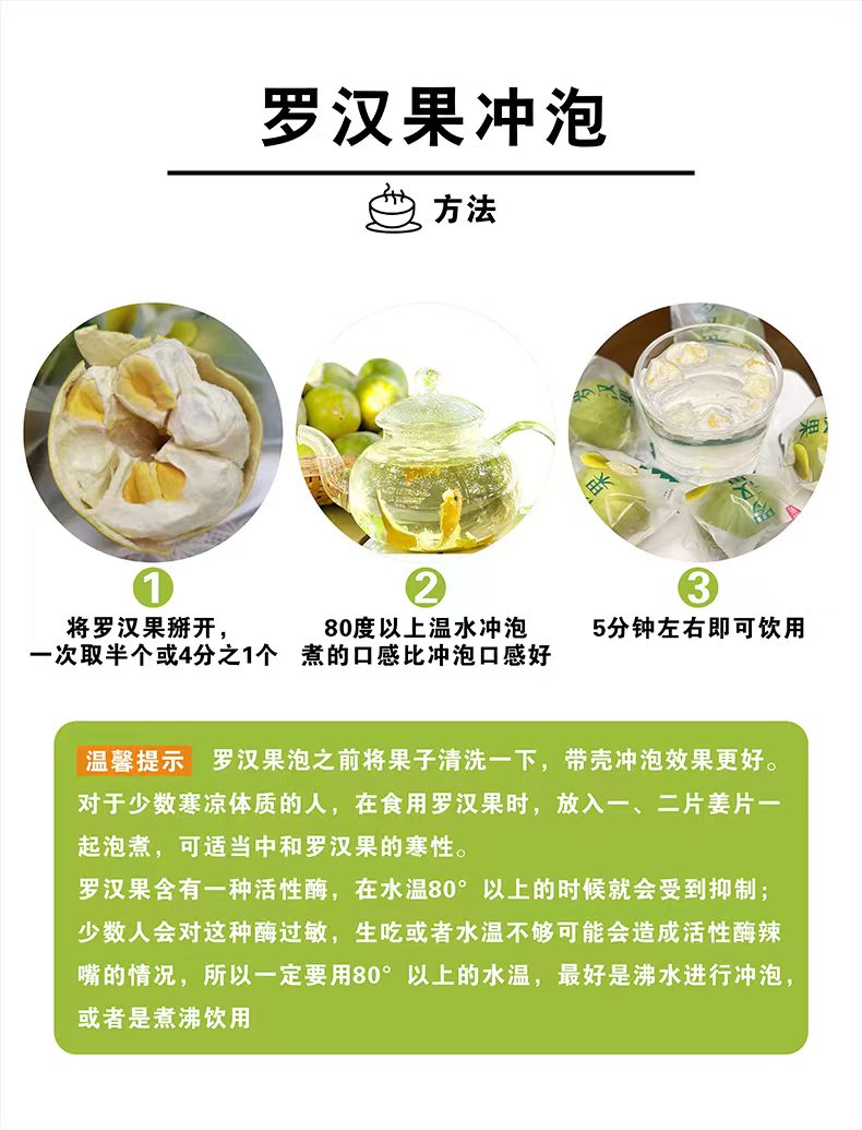 八道苛选:历经八道严苛筛选,只选30%优+罗汉果,拒绝苦果,拒绝焦黑,拒绝以小充大!