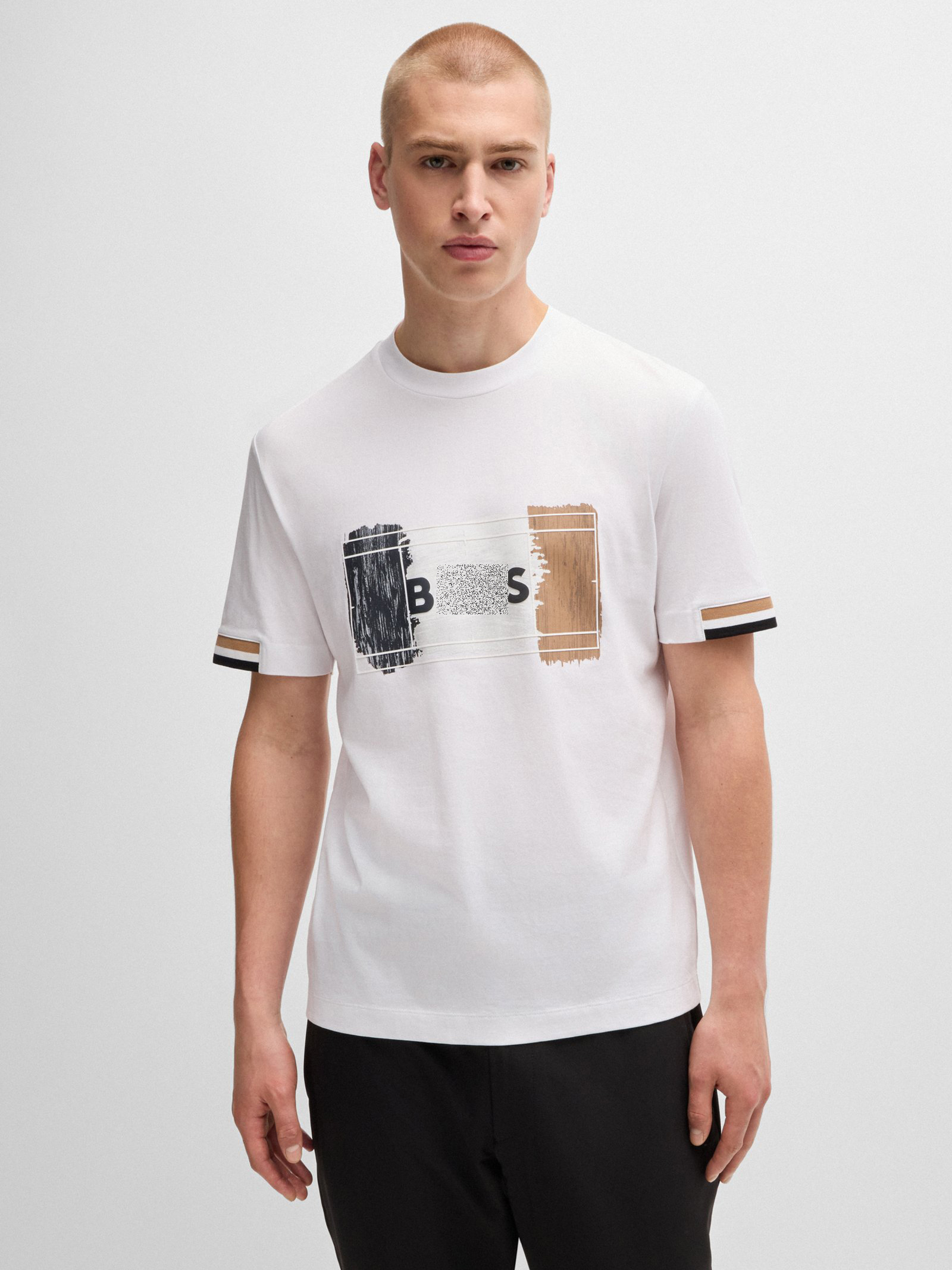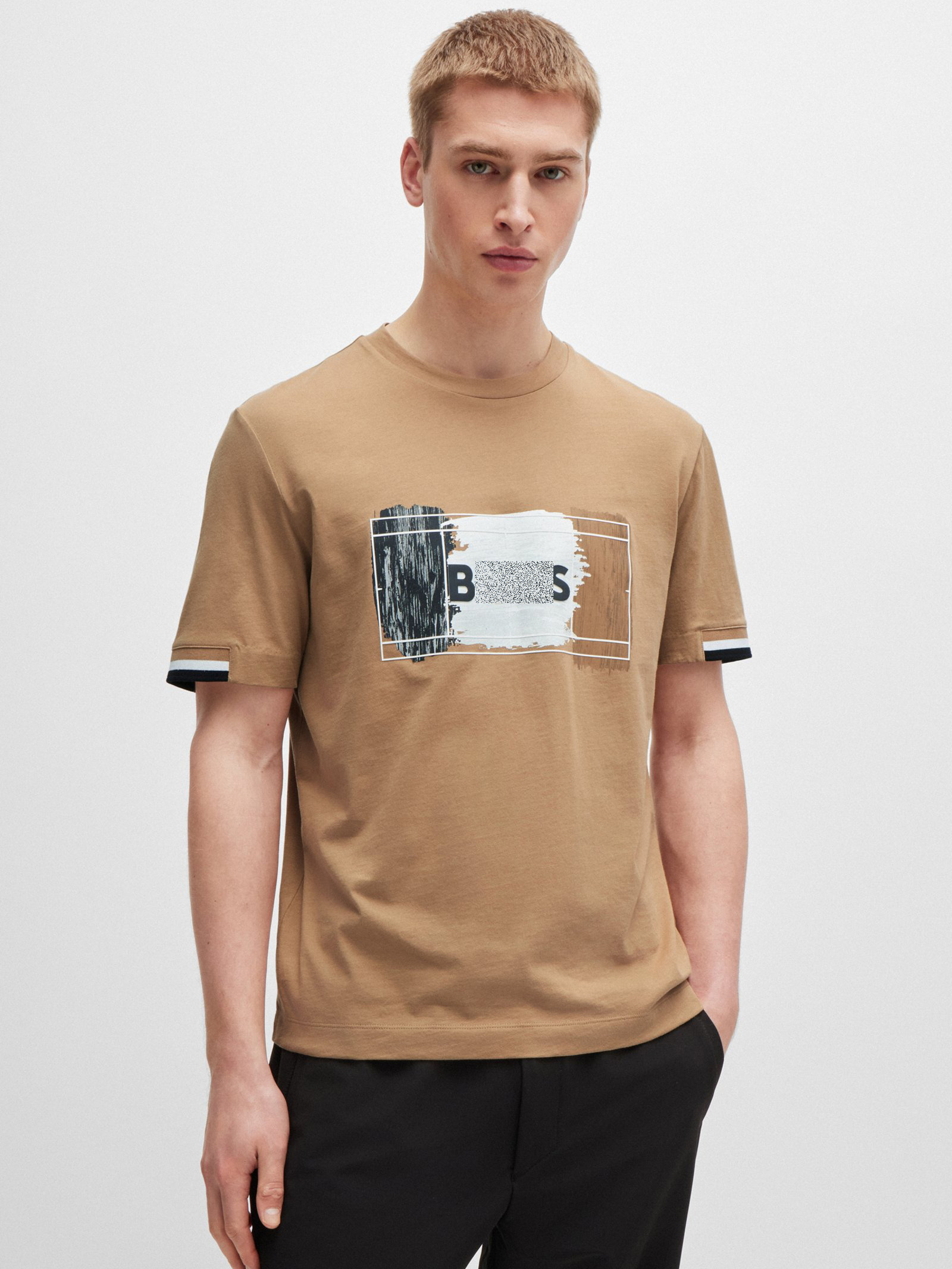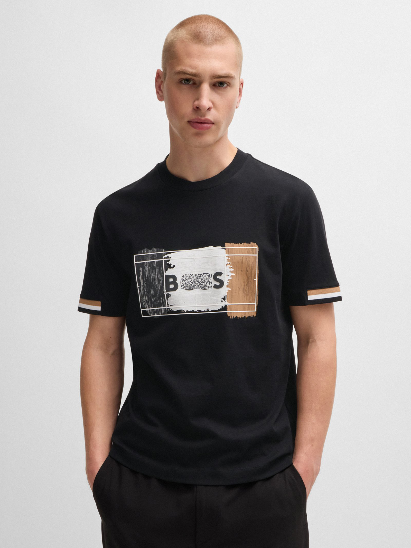 老板 2024夏新款 男士 三色艺术图案 棉质圆领短袖T恤