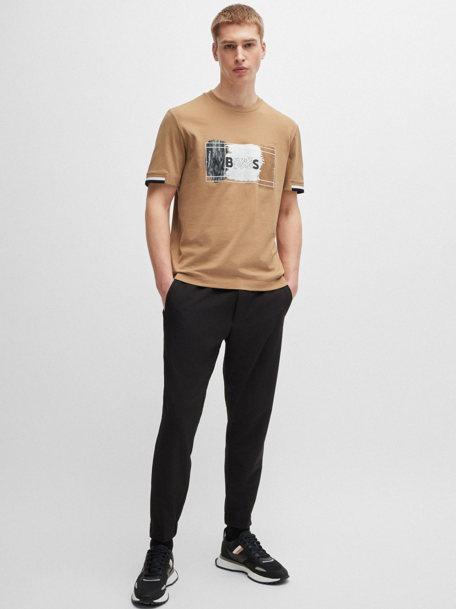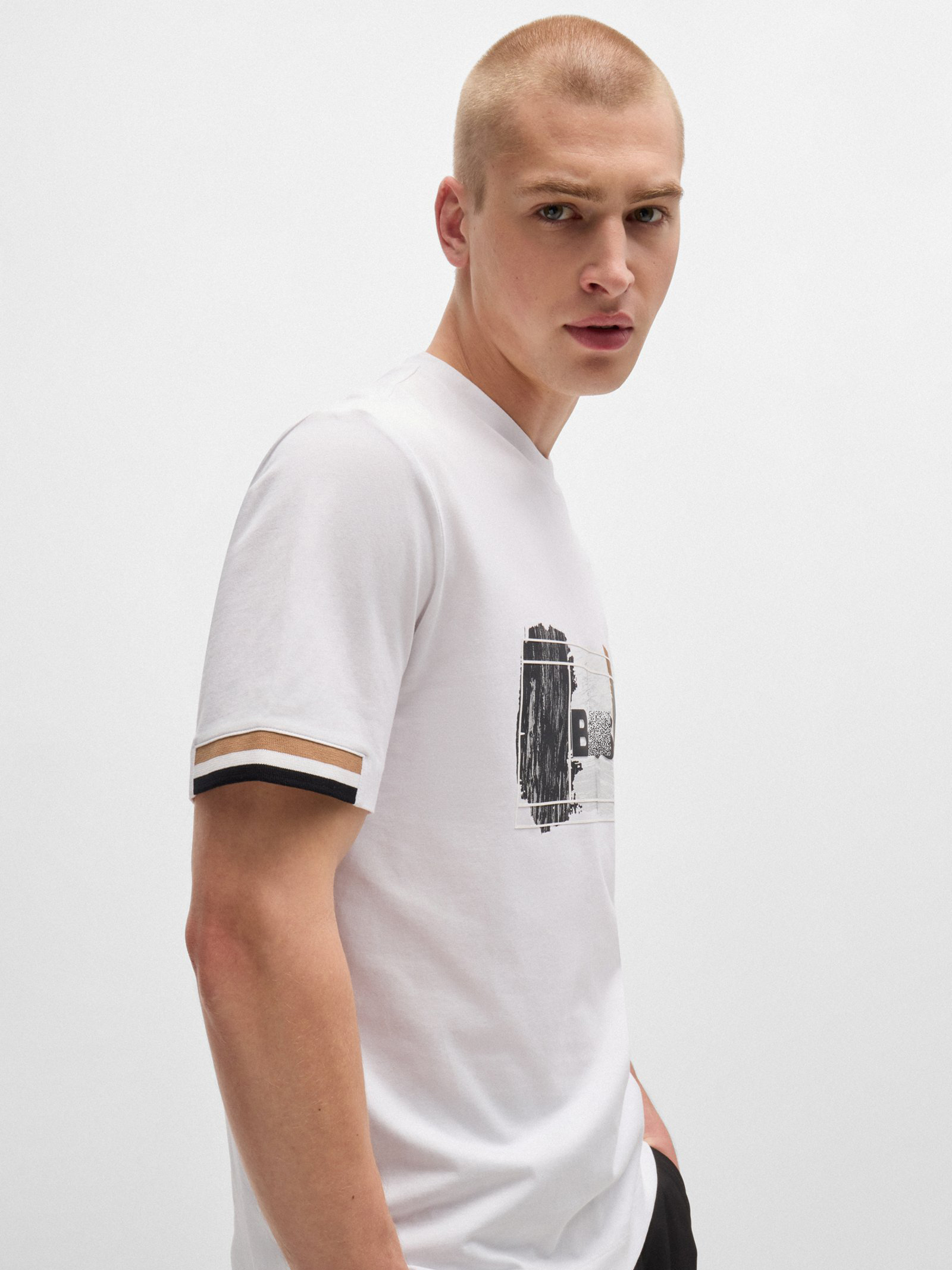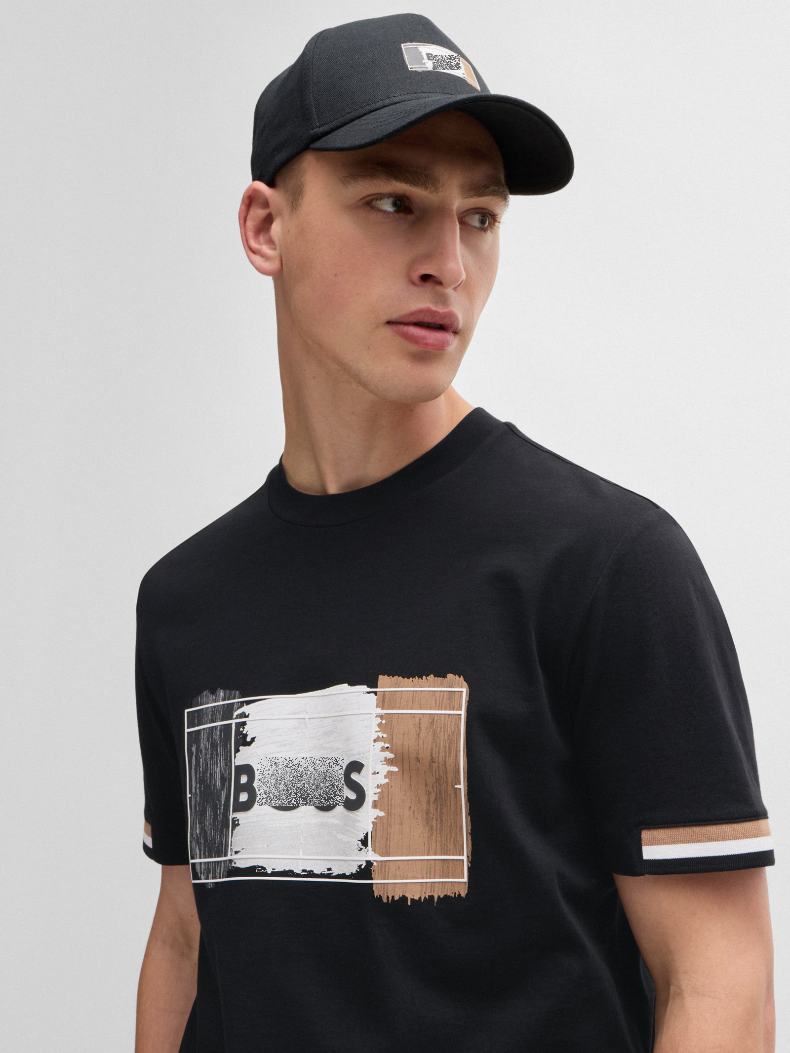 老板 2024夏新款 男士 三色艺术图案 棉质圆领短袖T恤