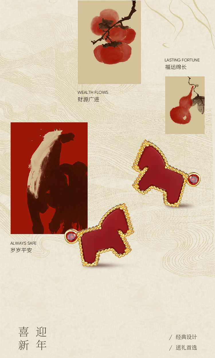ZEGL真柳设计师马年红色耳钉高级轻奢本命年耳环新年耳饰新款爆款