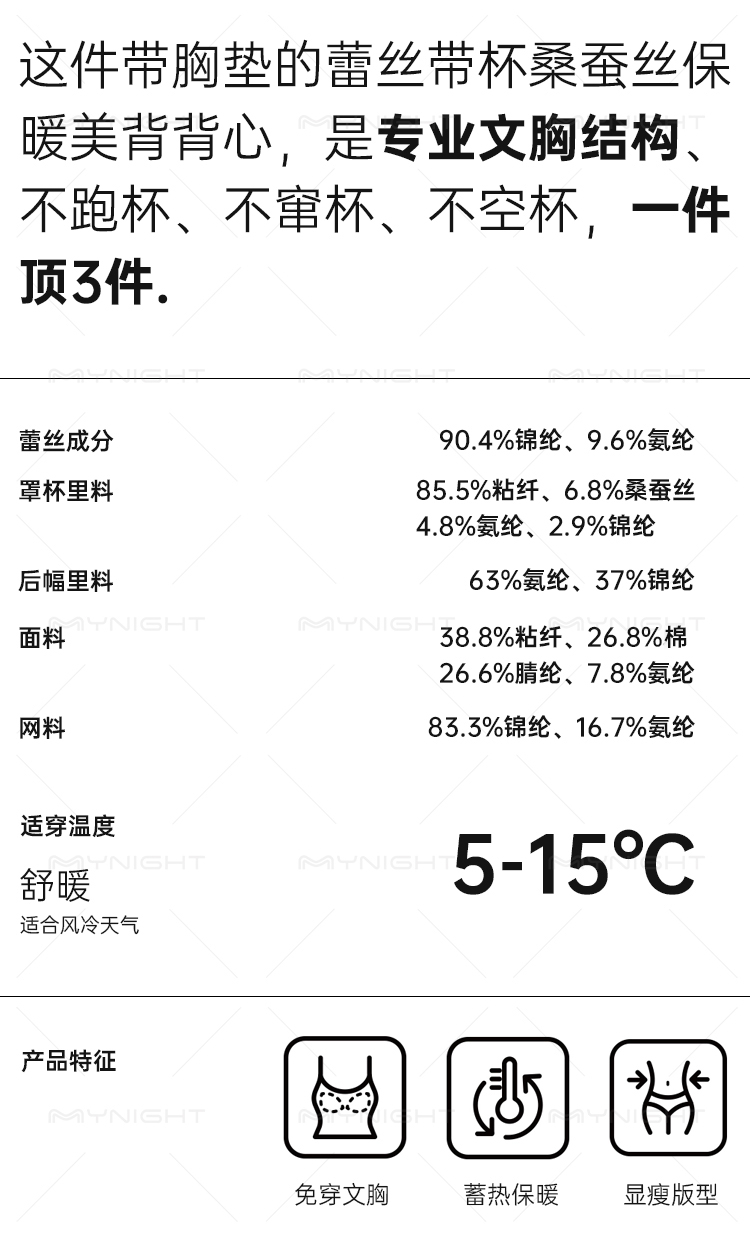 美奈川 蕾丝带杯保暖 美背背心DD5652