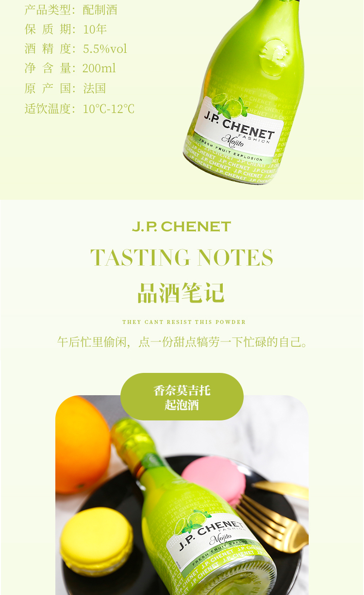 JP.CHENET香奈时尚系列 莫吉托mojito起泡酒 法国原瓶进口葡萄酒 200ml 节日礼赠 亲朋聚会 72小时发货