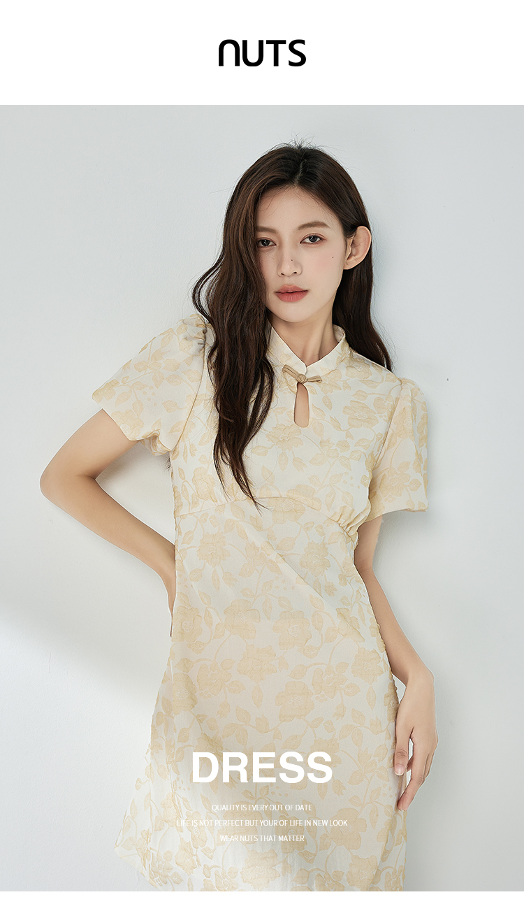 NUTS夏季新品时尚优雅气质设计感显瘦清新短袖连衣裙326101372