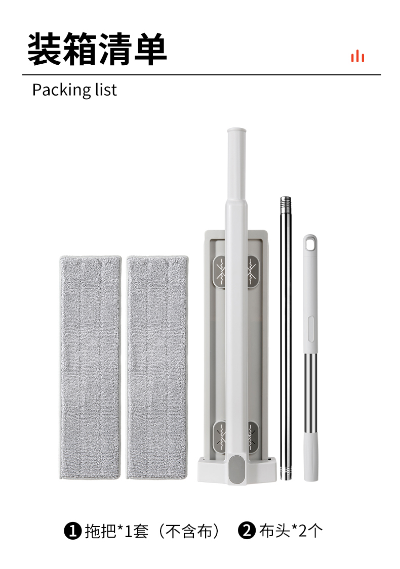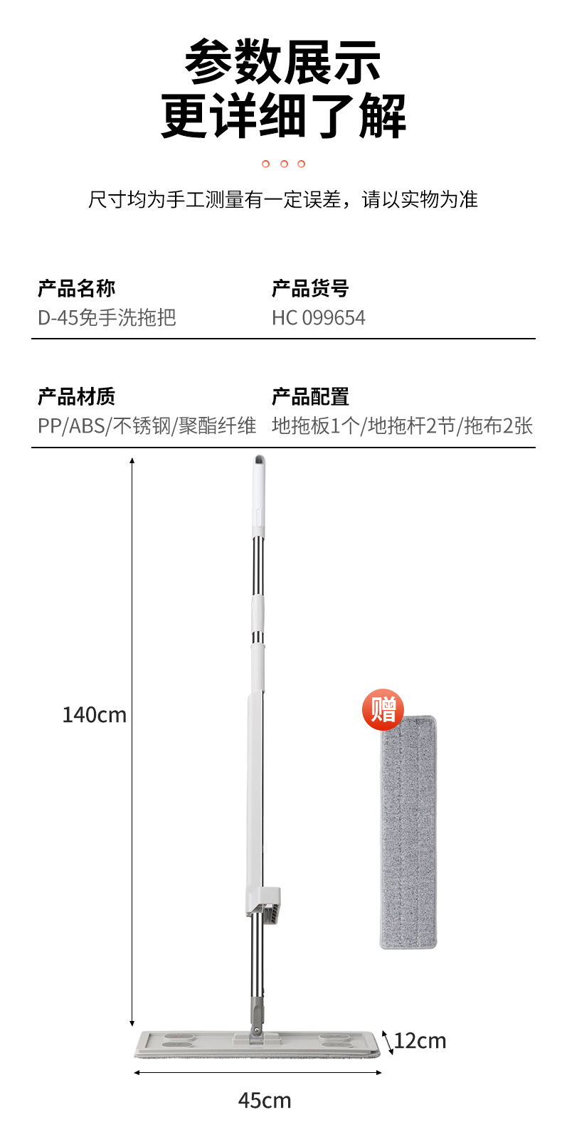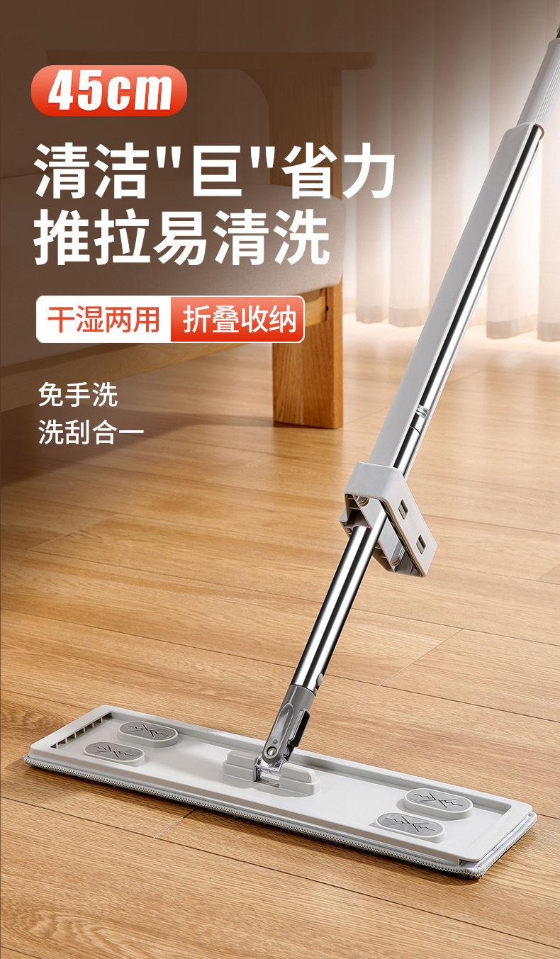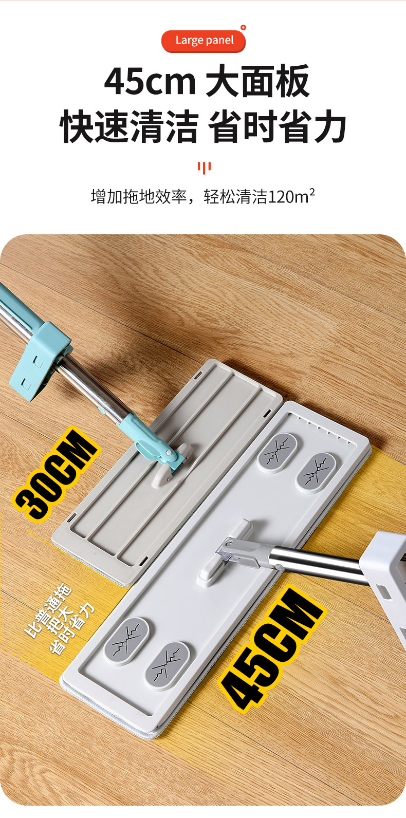 【批发】美丽雅免手洗45CM平板拖把不锈钢杆含2配布 1套