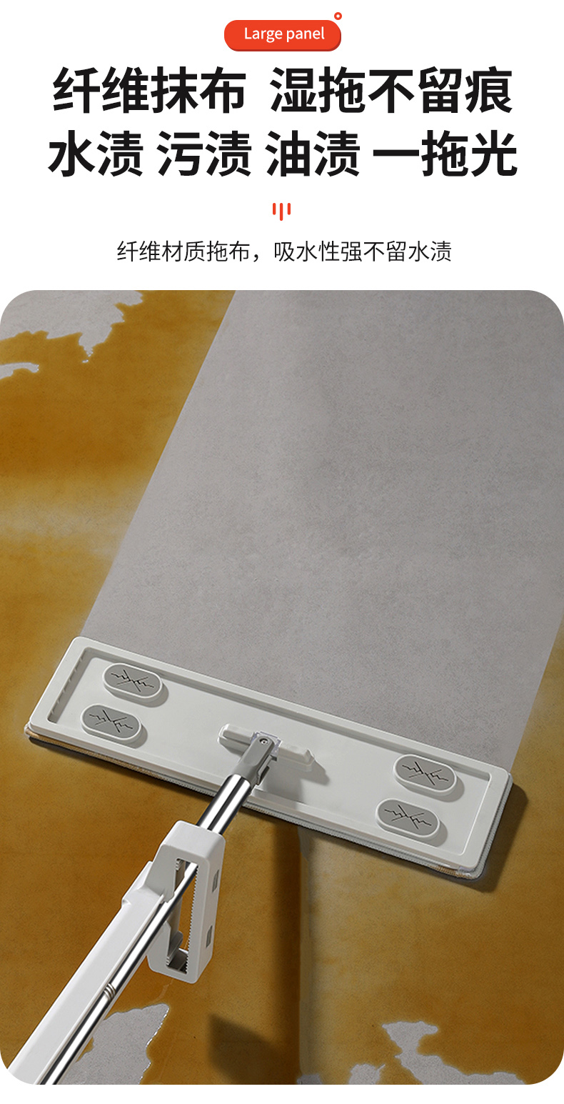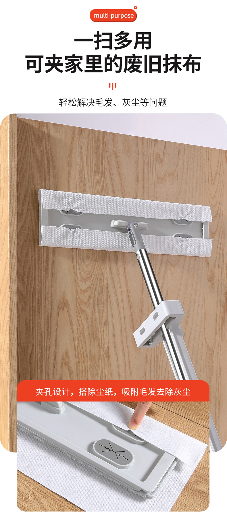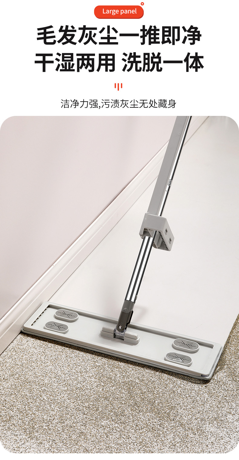 【批发】美丽雅免手洗45CM平板拖把不锈钢杆含2配布 1套