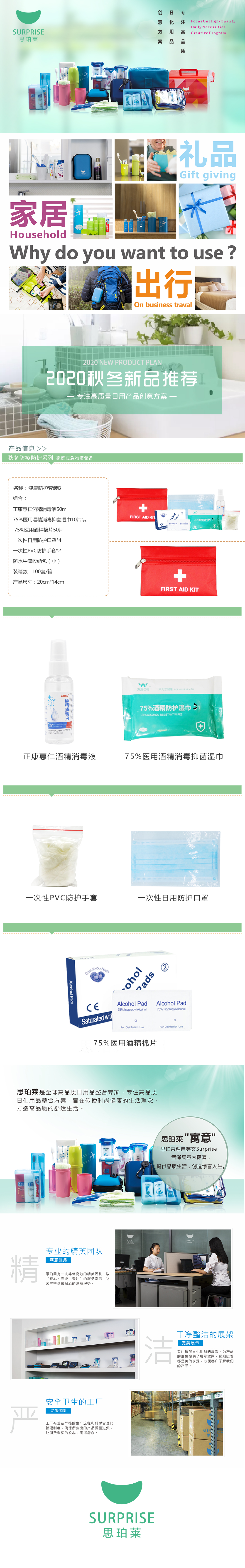 【全民防护】健康防护套装B1 消毒液抑菌湿巾酒精棉片口罩手套收纳包