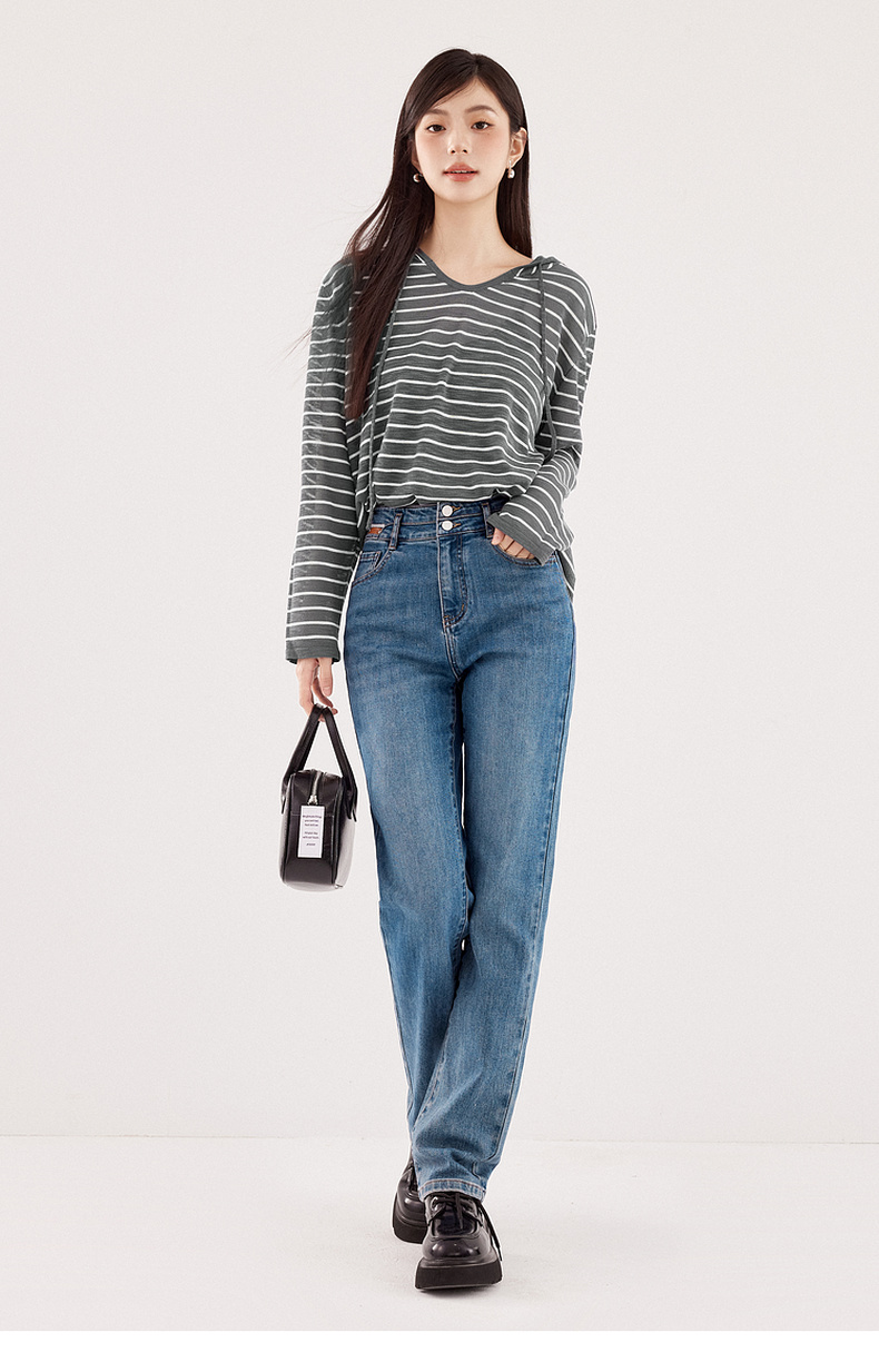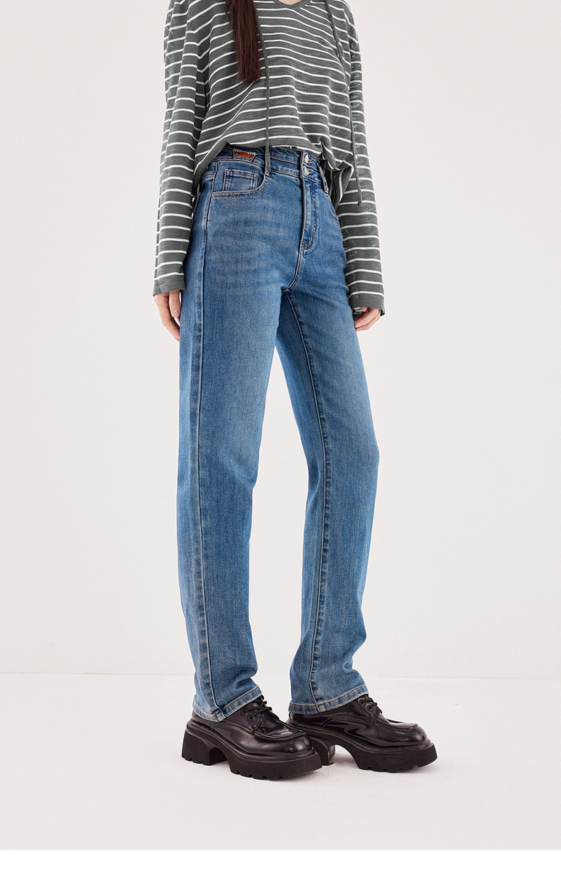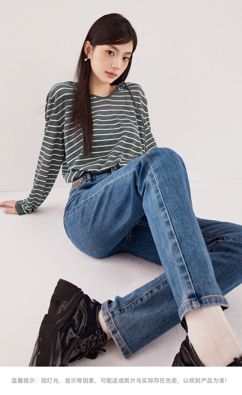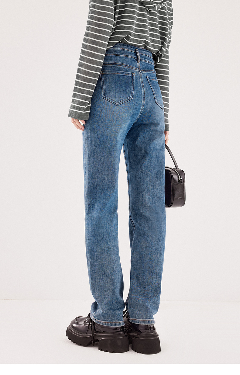 【严选】【雪醋酸凉感裤】诗凡黎高腰水洗阔腿牛仔裤2024夏新款小个子长裤7F7150131