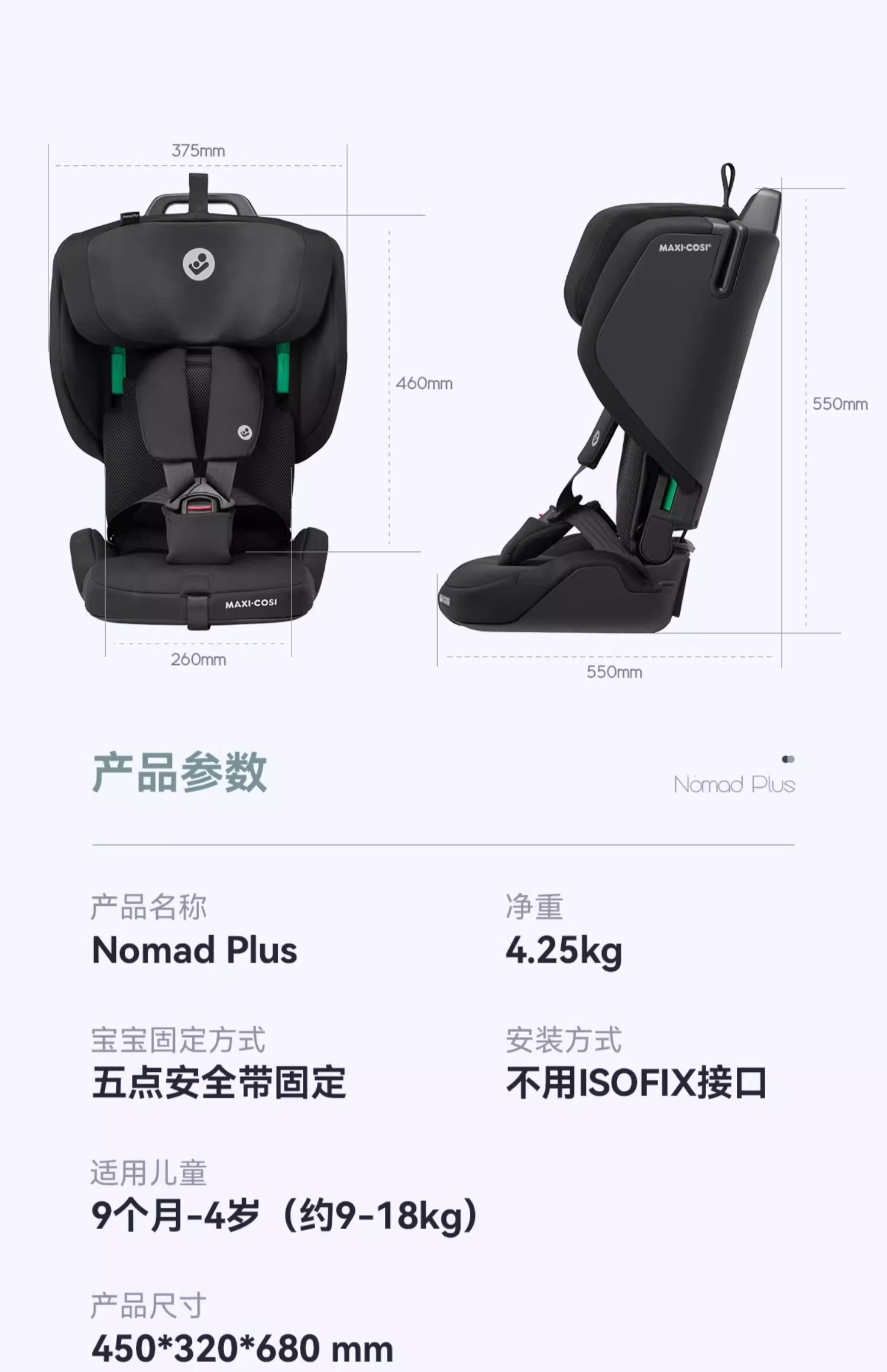 Maxicosi迈可适 Nomad plus+ 儿童婴幼儿宝宝便携式安全座椅出行9m-4Y