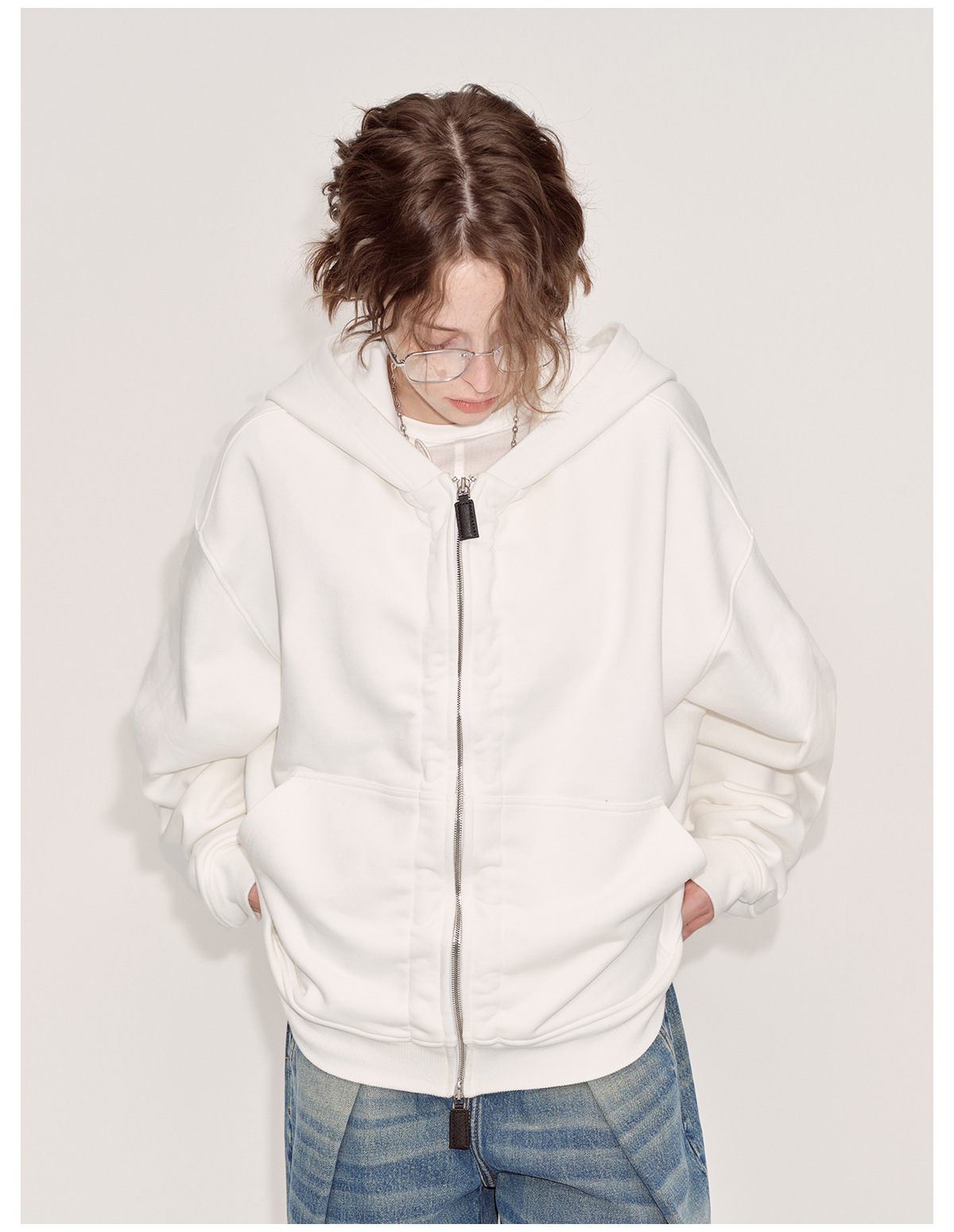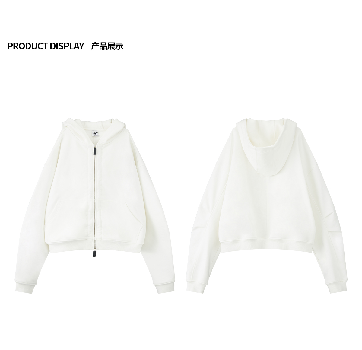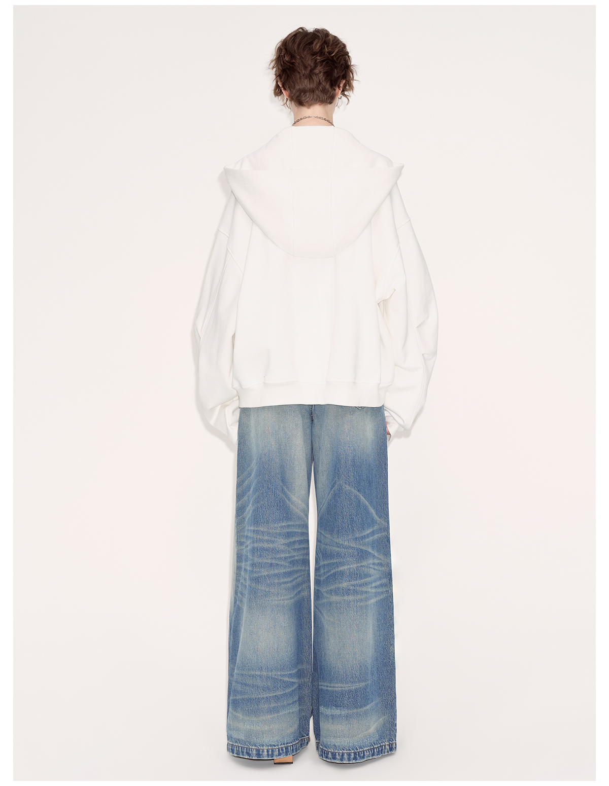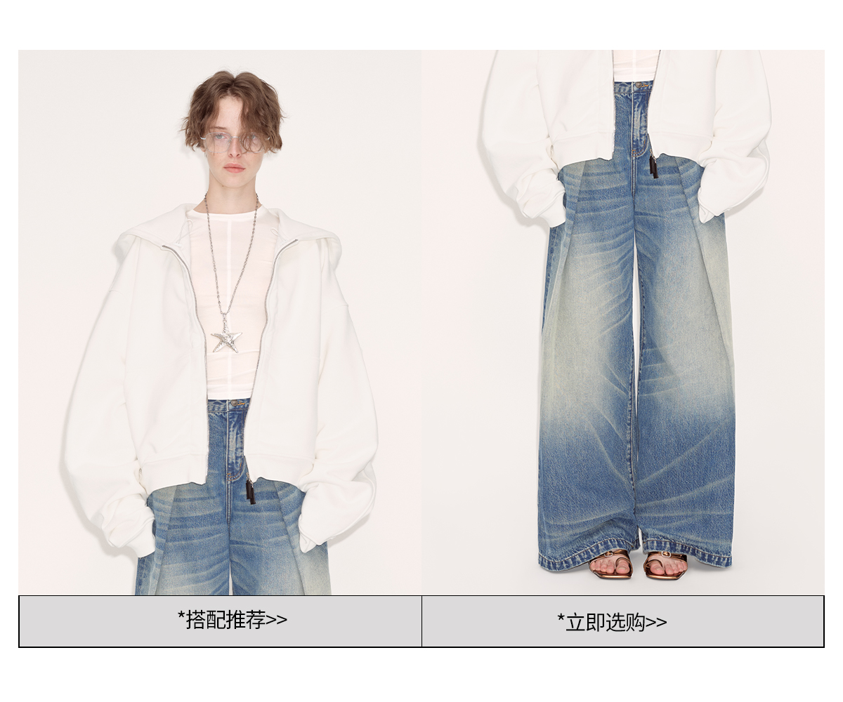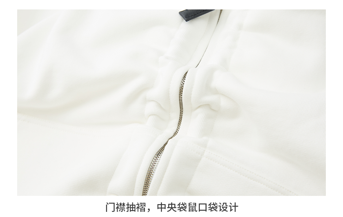出逃赤岗西/24AWW107/白色连帽休闲弯刀袖抽褶拉链外套
