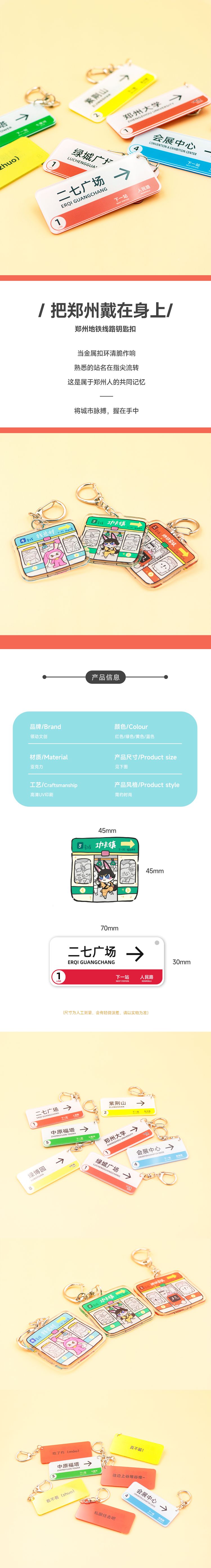 郑州地铁线路钥匙扣/郑州地铁文创挂饰
