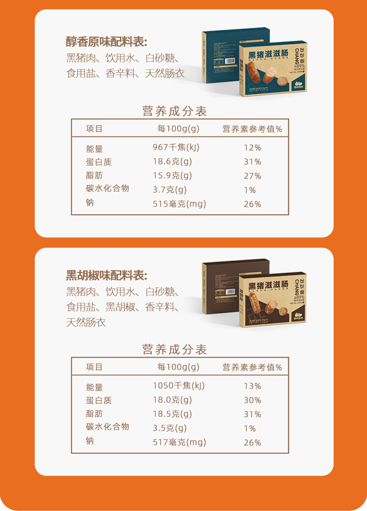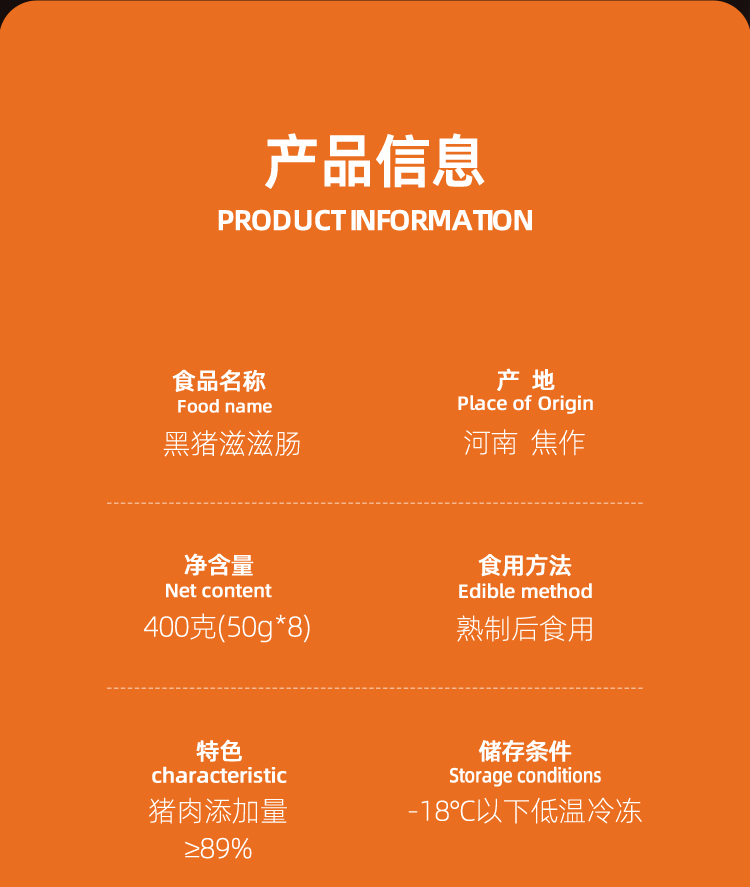 【不柴不腻 真材实料】黑猪滋滋肠 400g*2盒