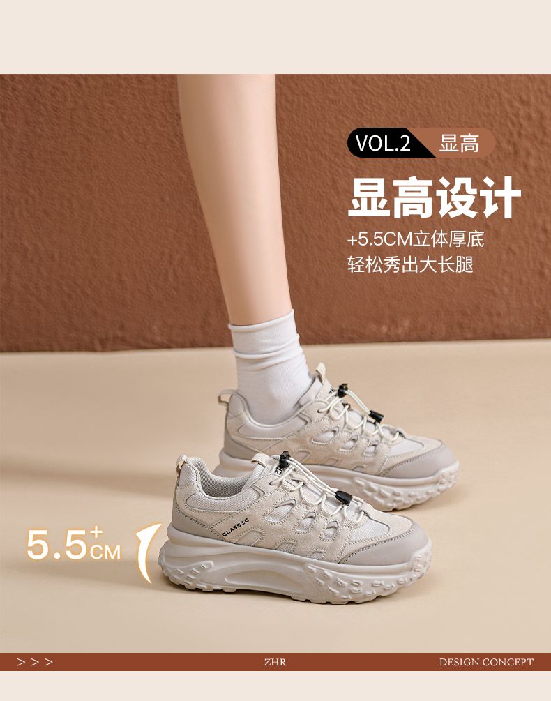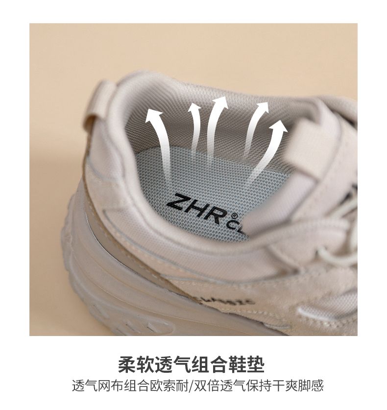 ZHR则则厚底老爹鞋女2024秋季新款百搭耐磨运动休闲鞋免系增高鞋