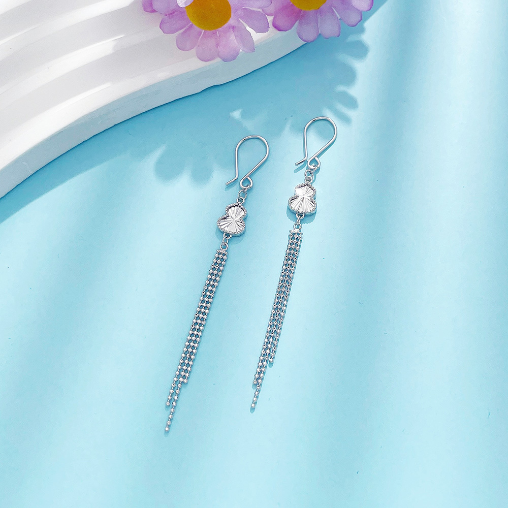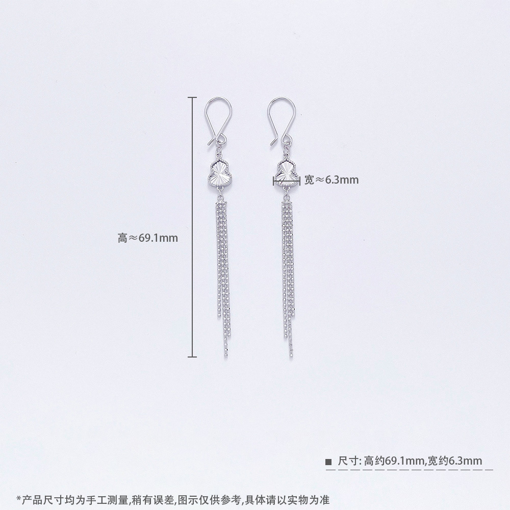 【限时8.8折】【线上铂金馆】PT950 #复古风 #CNC #招财纳福 铂金福禄双至小金珠流苏镭射葫芦耳饰耳吊耳钩(葫芦为实心)(PTES00055)预售产品下单后不退款不退货不换货不补差价)