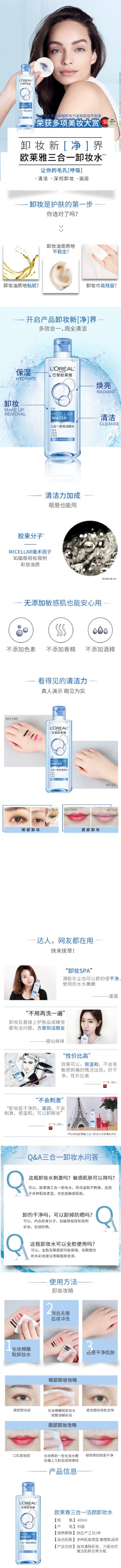 【欧莱雅】三合一卸妆洁颜水 清爽型