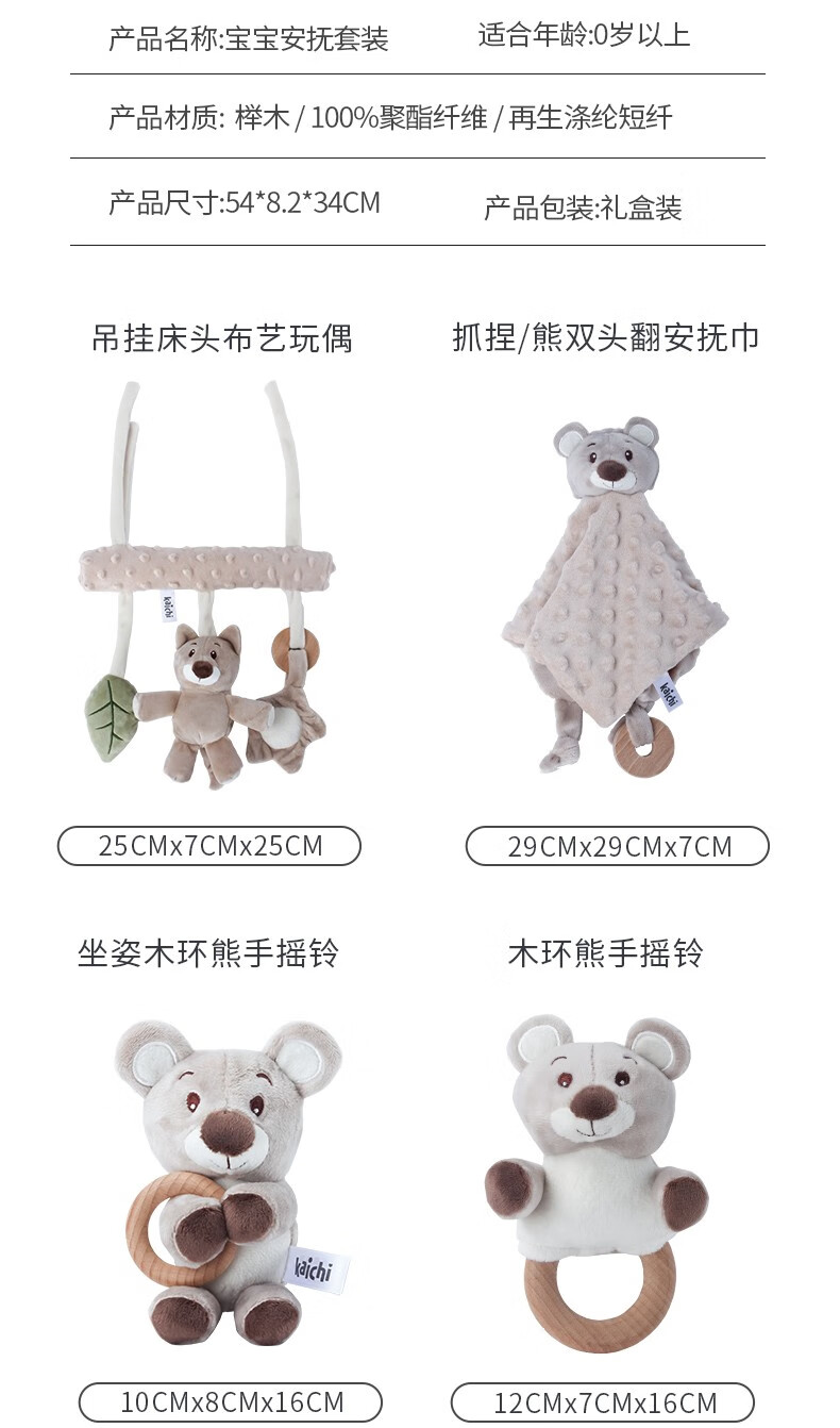 凯驰玩具(Kaichi)婴儿早教玩具新生儿安抚套装0-1-3岁安抚6件套
