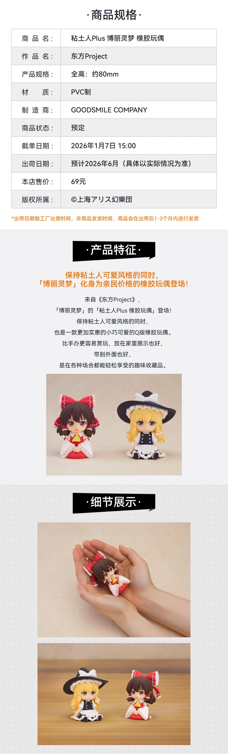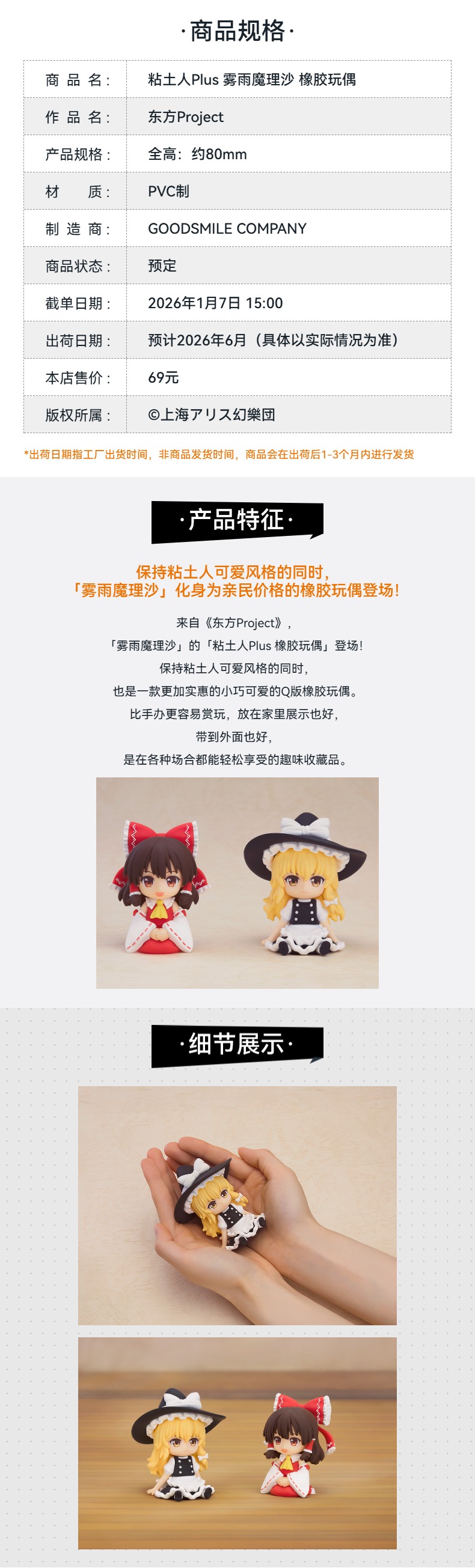 【GSC预售定金】粘土人Plus 博丽灵梦/雾雨魔理沙 橡胶玩偶 东方Project
