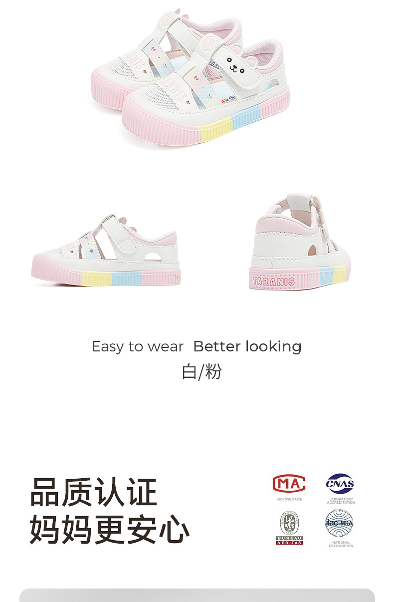 泰兰尼斯夏季新款童鞋软底沙滩鞋学步凉鞋男宝宝板鞋透气女童鞋子T07T6B8813