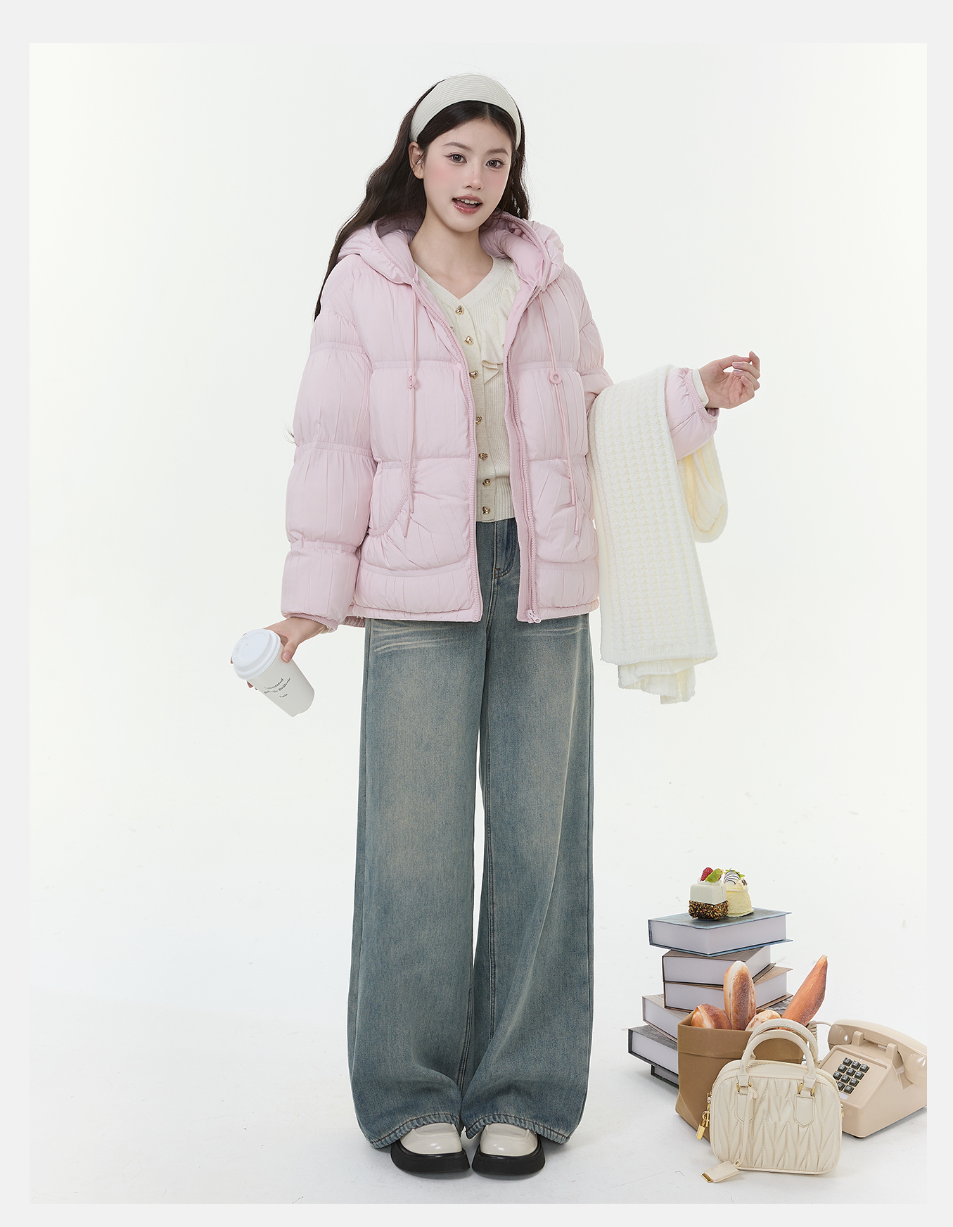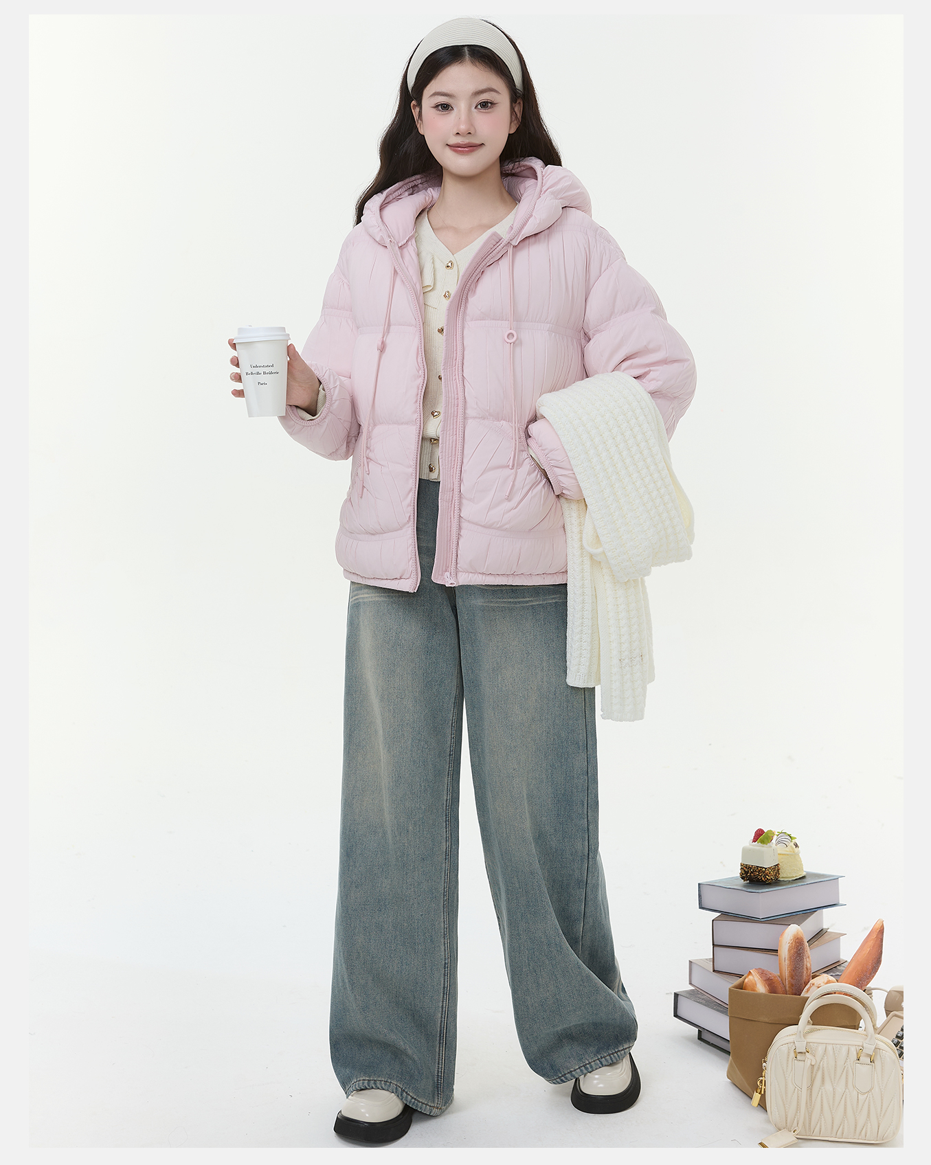 P&X设计师女装2025冬季连帽运动户外短款羽绒服825424049 粉色