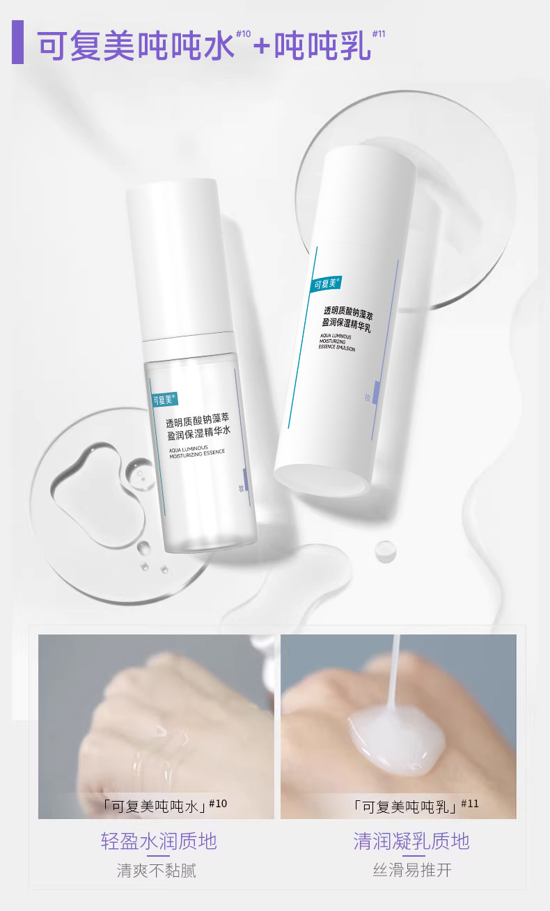 可复美吨吨【喷雾+水+乳+霜】透明质酸钠藻萃盈润保湿精华套装补水滋润