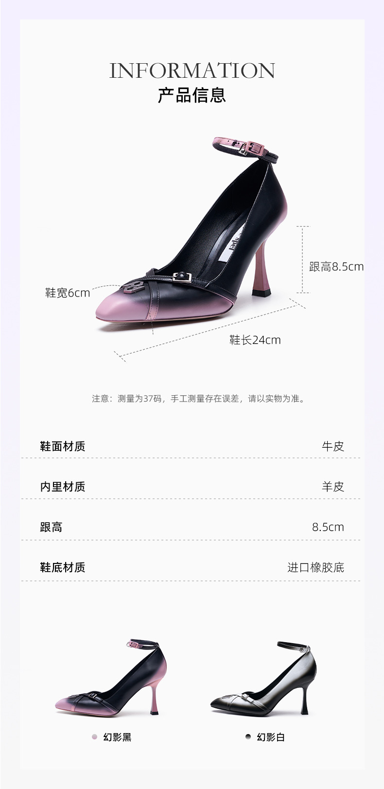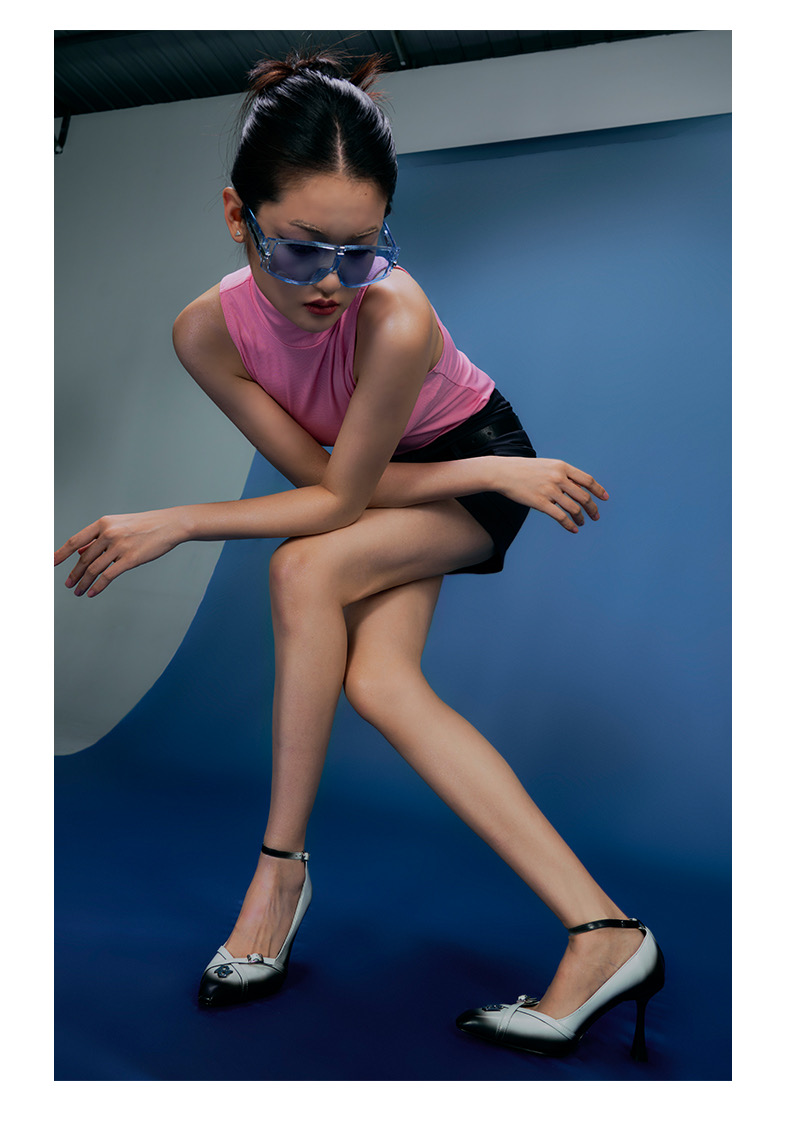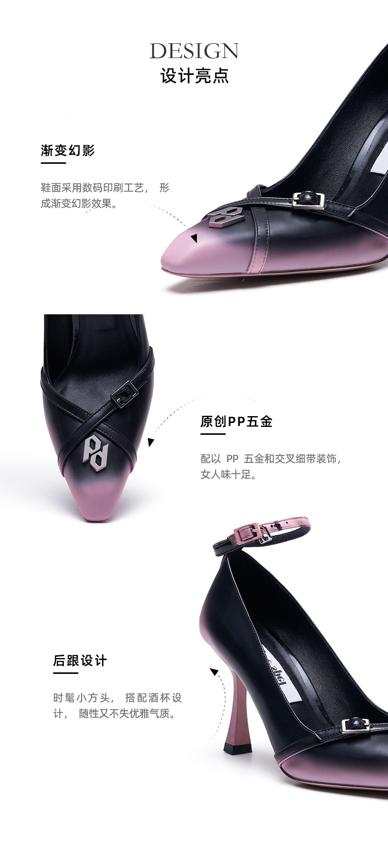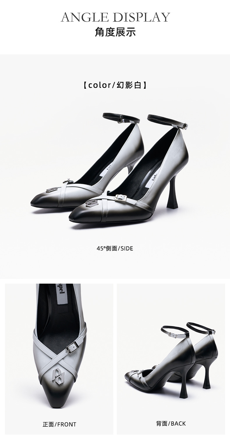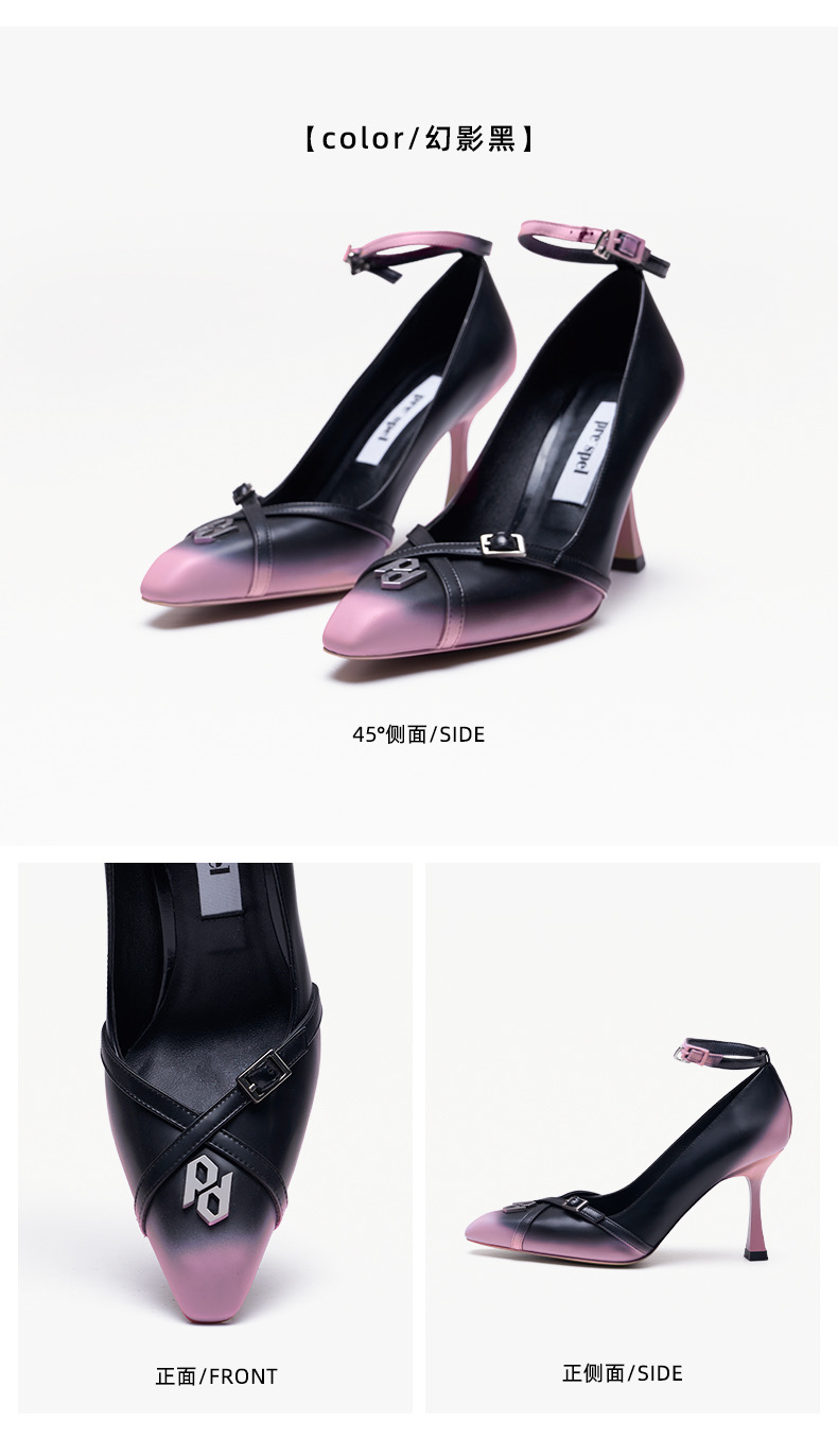 小方头渐变高跟单鞋