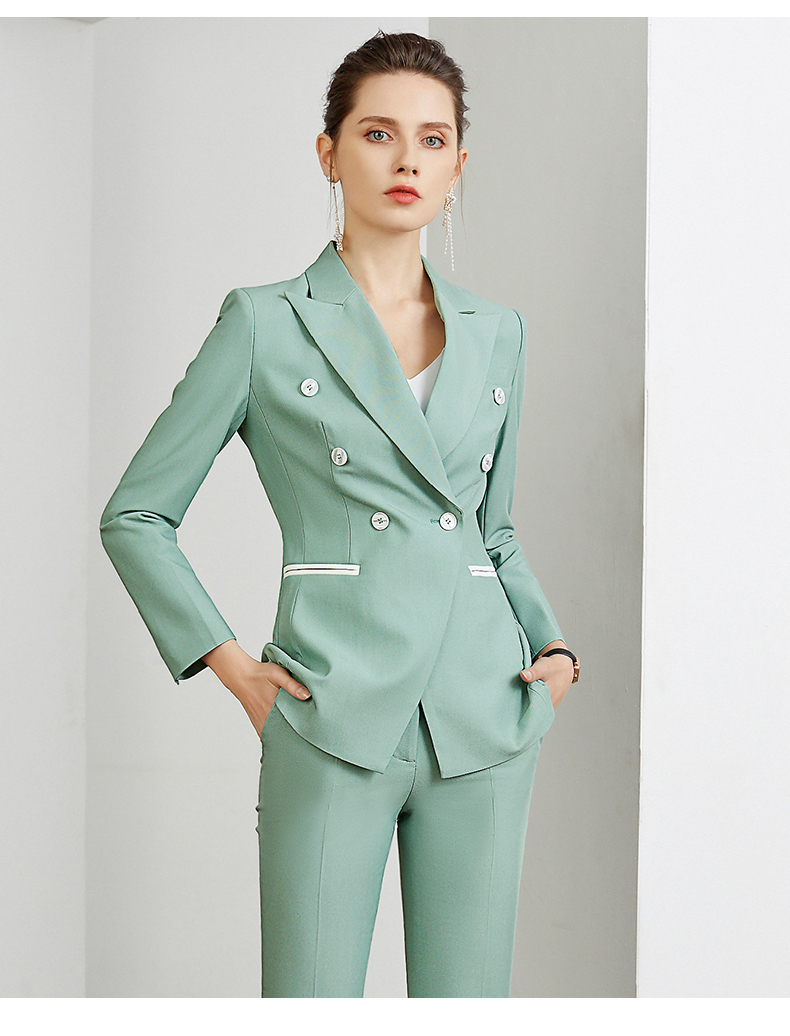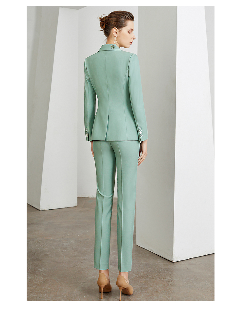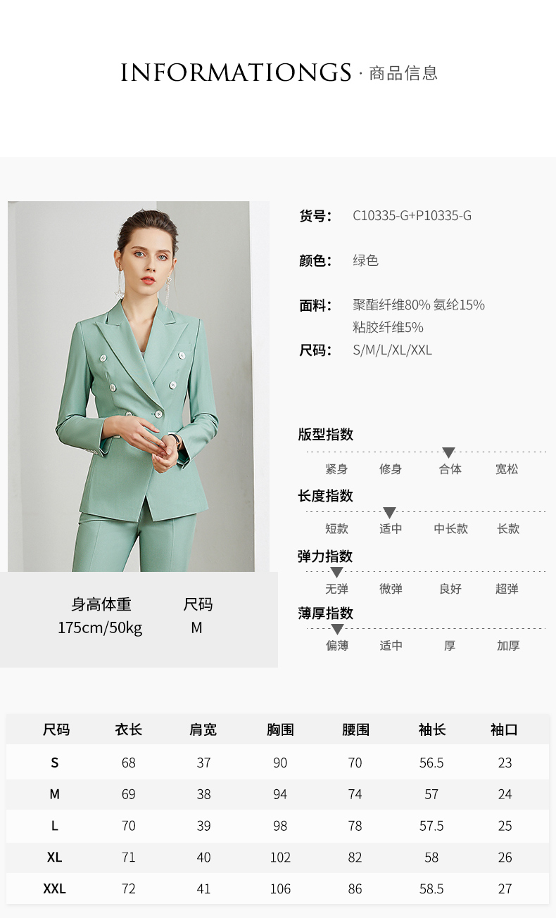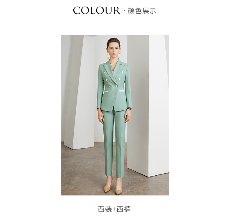 IWY/时尚绿色西服套装女职业修身显瘦气质女神商务上班族通勤面试正装C10335+P10325