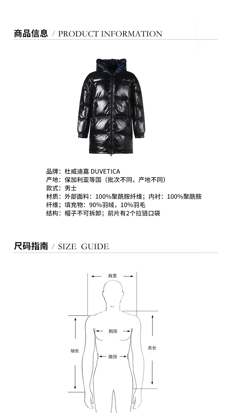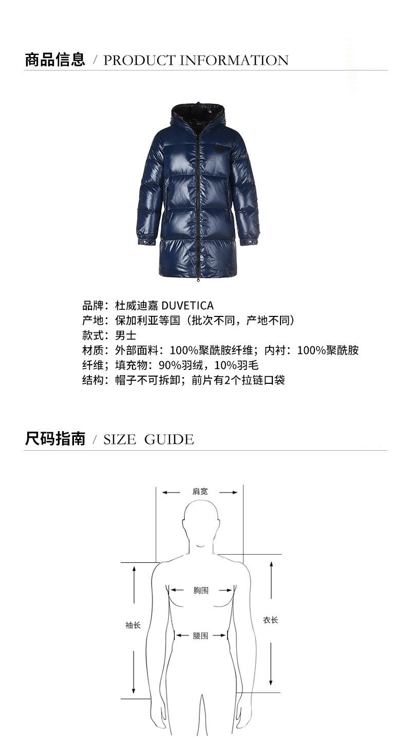 DUVETICA/DUVETICA【21秋冬新品】男士羽绒服 男士KORNEPHOROS系列聚酰胺纤维中长款鹅绒连帽羽绒服大衣外套 212 U5030157S00 1035R